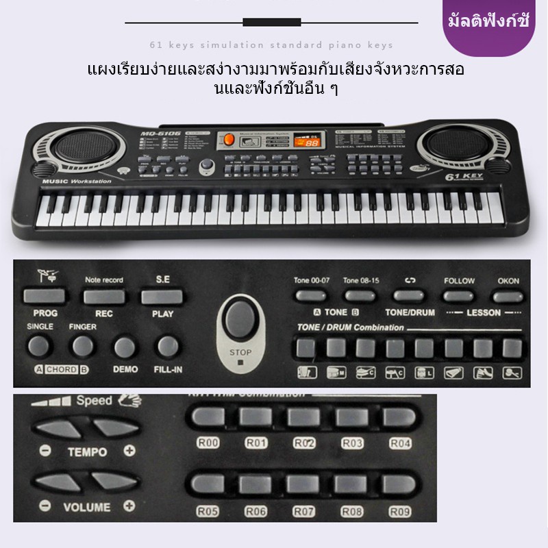 【61 คีย์】🎶ไฟฟ้าคีย์บอร์ด คีย์บอร์ดเปียโนอิเล็กทรอนิกส์ คีย์บอร์ดไฟฟ้า คีย์บอร์ด เปียโนและคีย์บอร์ด + ไมโครโฟน อะแดปเตอ