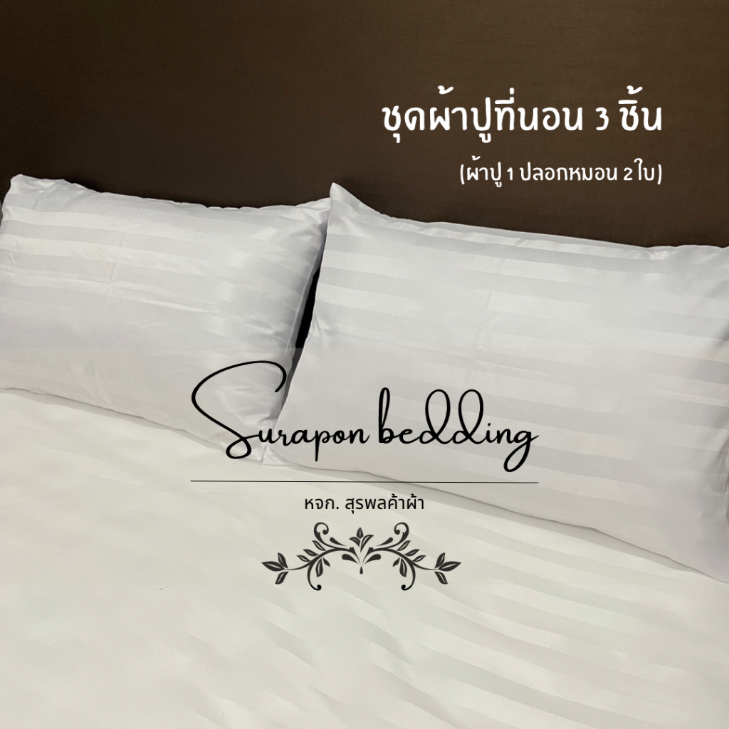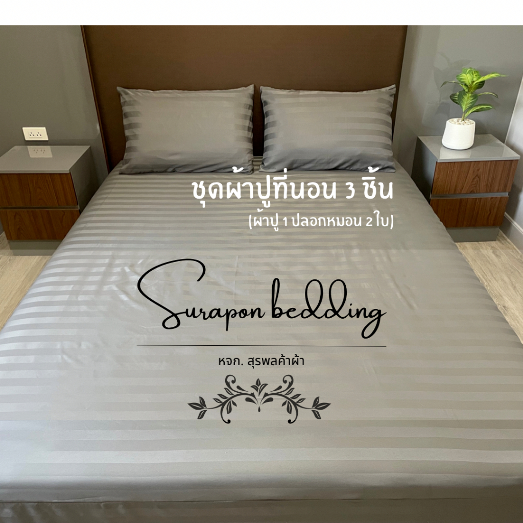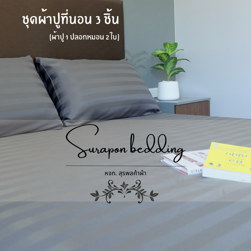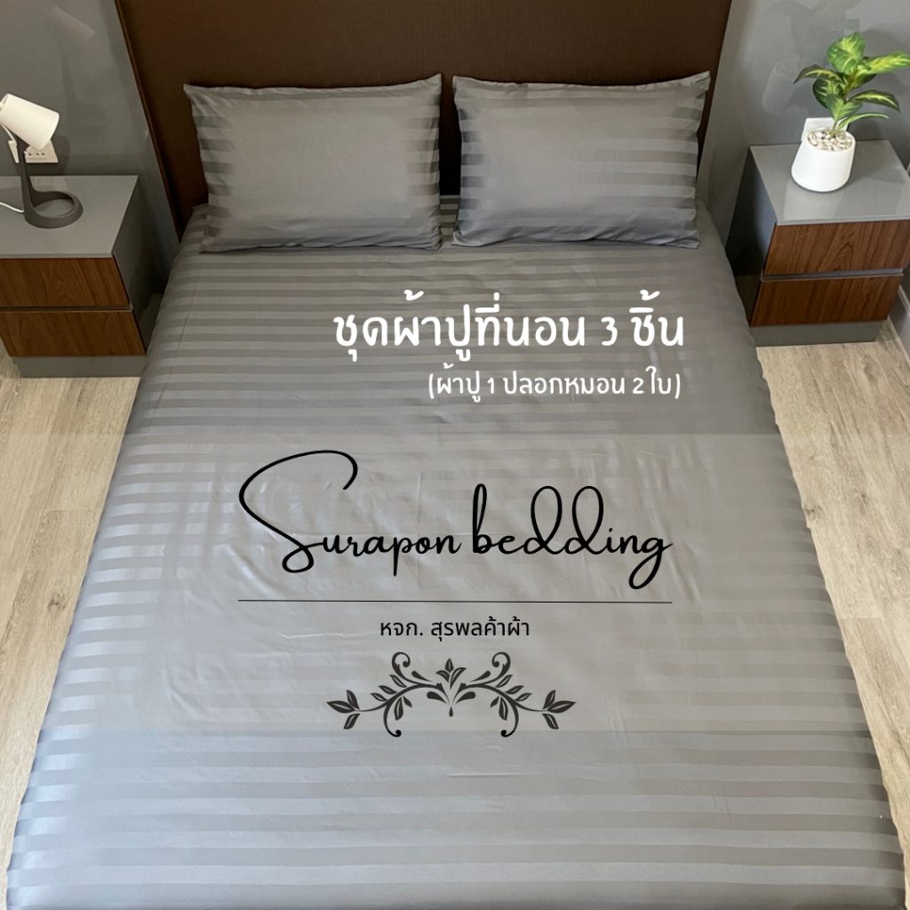 Surapon : ชุดผ้าปู 3 ชิ้น ผ้าปูที่นอน + ปลอกหมอน ขนาด 3.5ฟุต 5ฟุต 6ฟุต สีพื้น