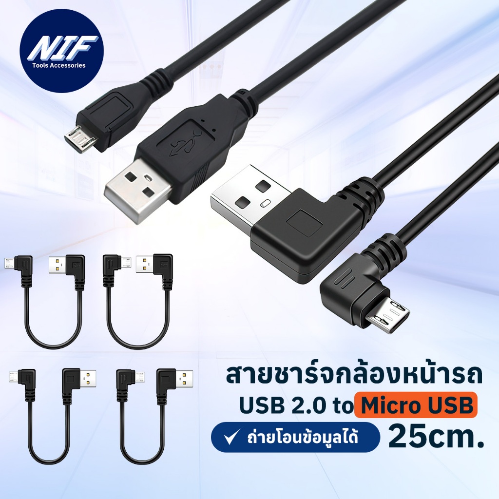 สาย Micro Usb สั้น สายชาร์จกล้องติดหน้ารถยนต์ทุกรุ่น USB 2.0 to Micro usb 25 cm.