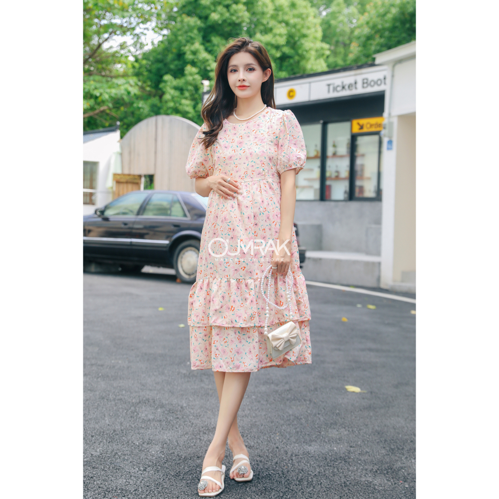 ( สายผูก + ซับใน + ให้นม ) ชุดเดรสคลุมท้องผ้าไหมอิตาลี BK1096