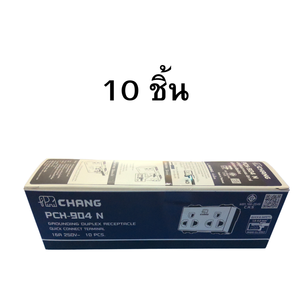 ยกกล่อง 10 ตัว ช้าง ปลั๊กกราวด์คู่รุ่นใหม่ เต้ารับคู่เสียบขากลมแบน มีกราวด์ เสียบล็อค PCH-904N CHANG