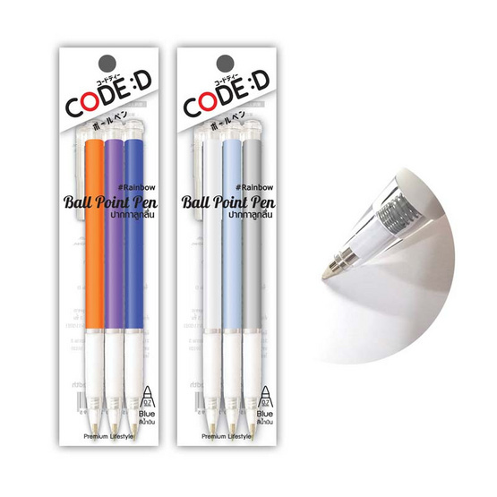 CODE:D ปากกาลูกลื่น 0.7 มม. Rainbow (3 ด้าม) คละสี เขียนลื่น จับสบาย สีสันสดใส!