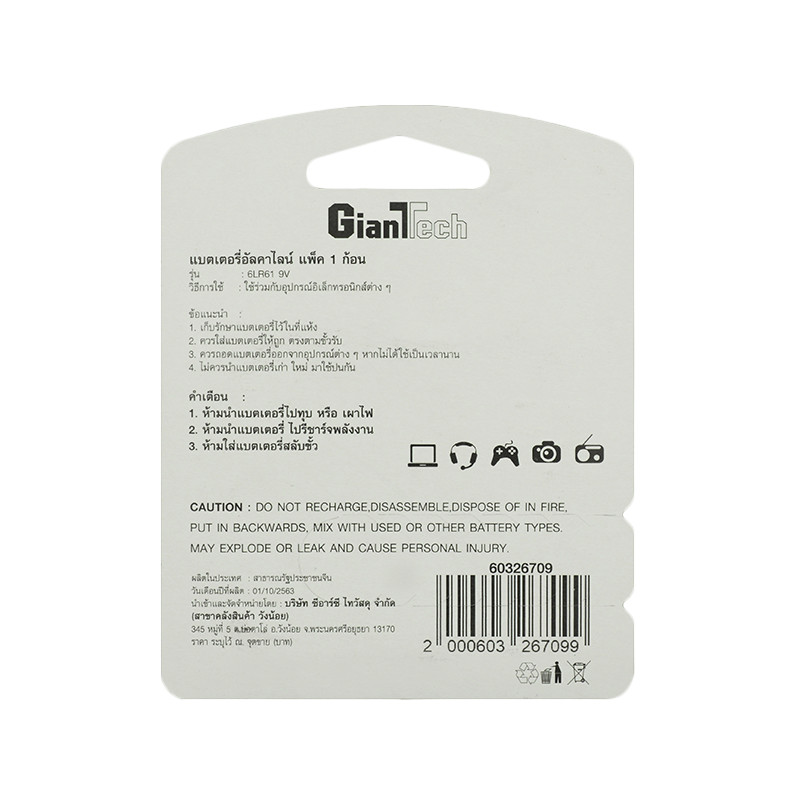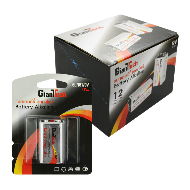 GIANTTECH ถ่านอัลคาไลน์ รุ่น 6LR61 ขนาด 9 วัตต์ สีเงิน