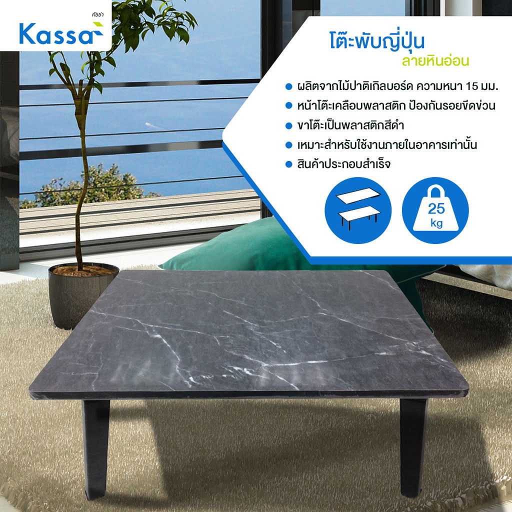 KASSA โต๊ะพับญี่ปุ่นลายหินอ่อน ขนาด 60 x 60 ซม. สีดำ