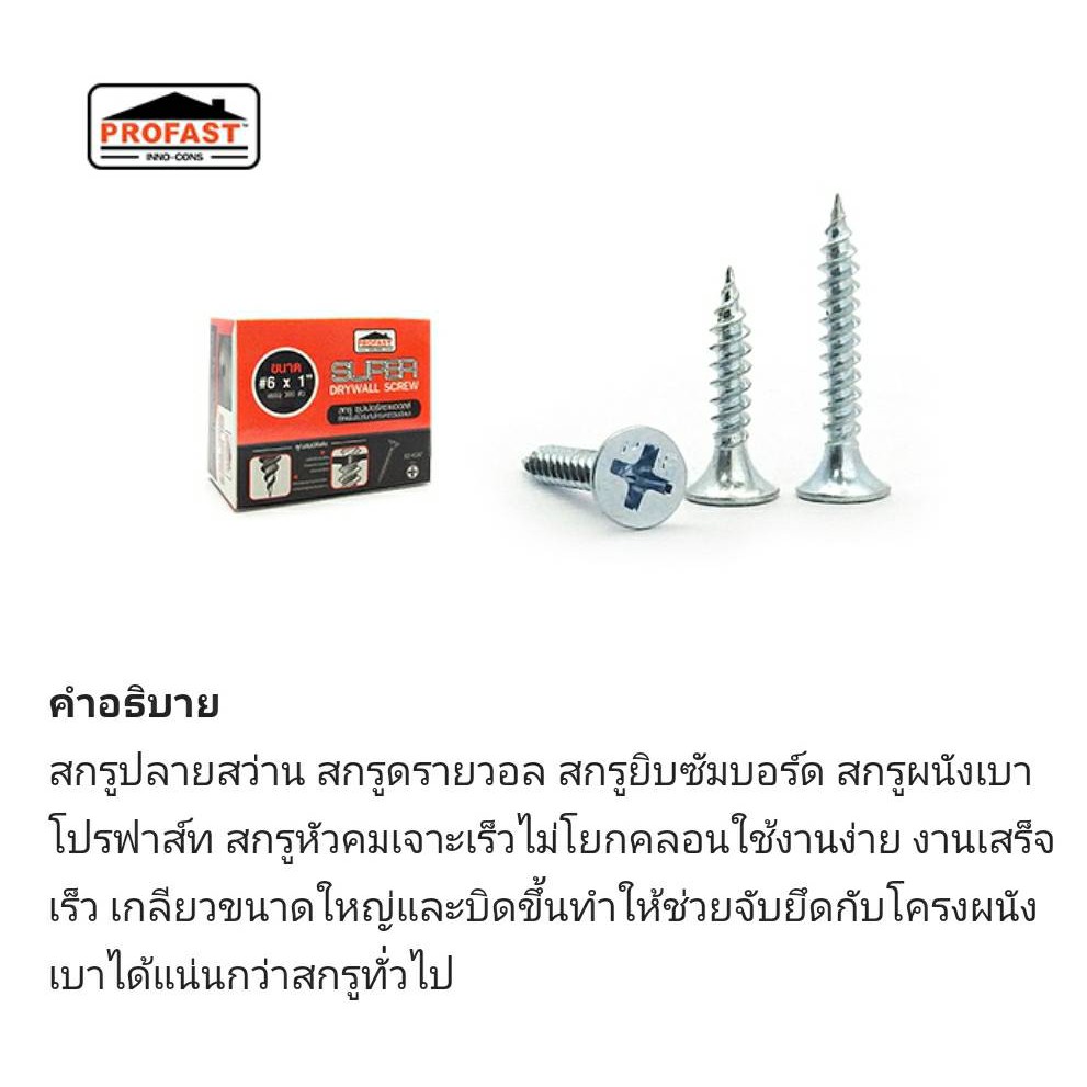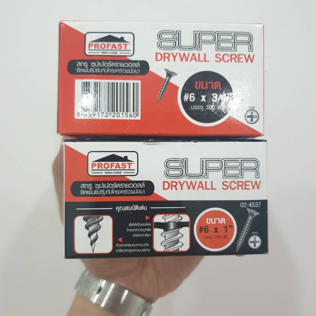 Profast สกรู ซุปเปอร์ ดรายวอล 2 ตัวเลือก ; เบอร์ 6 ยาว 3/4" ; เบอร์ 6 ยาว 1" (ราคาต่อกล่อง;300 ตัว)