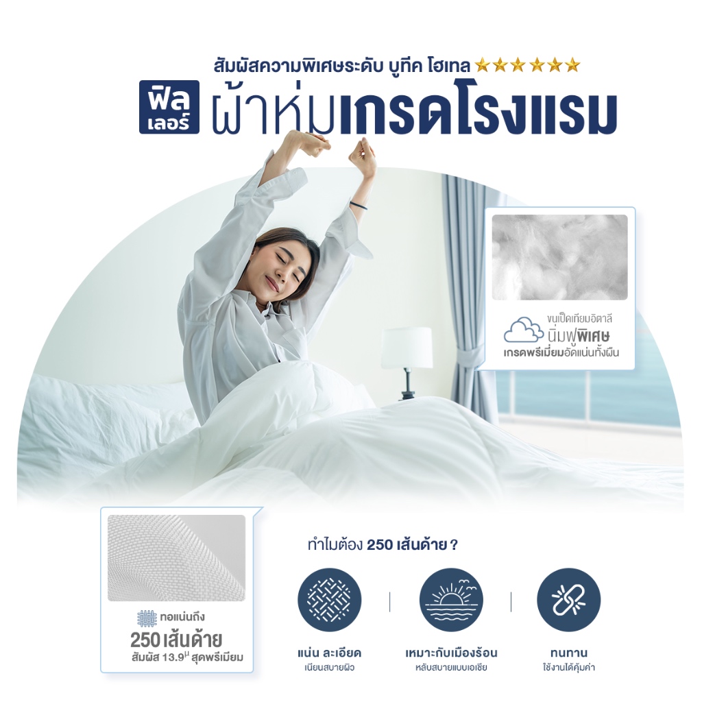 Orientas รุ่น Umi ไส้ผ้านวมโรงแรมระดับ 6 ดาว เส้นใยละเอียด นุ่มฟู อุ่นสบาย พรีเมี่ยม มาตรฐานโรงแรม