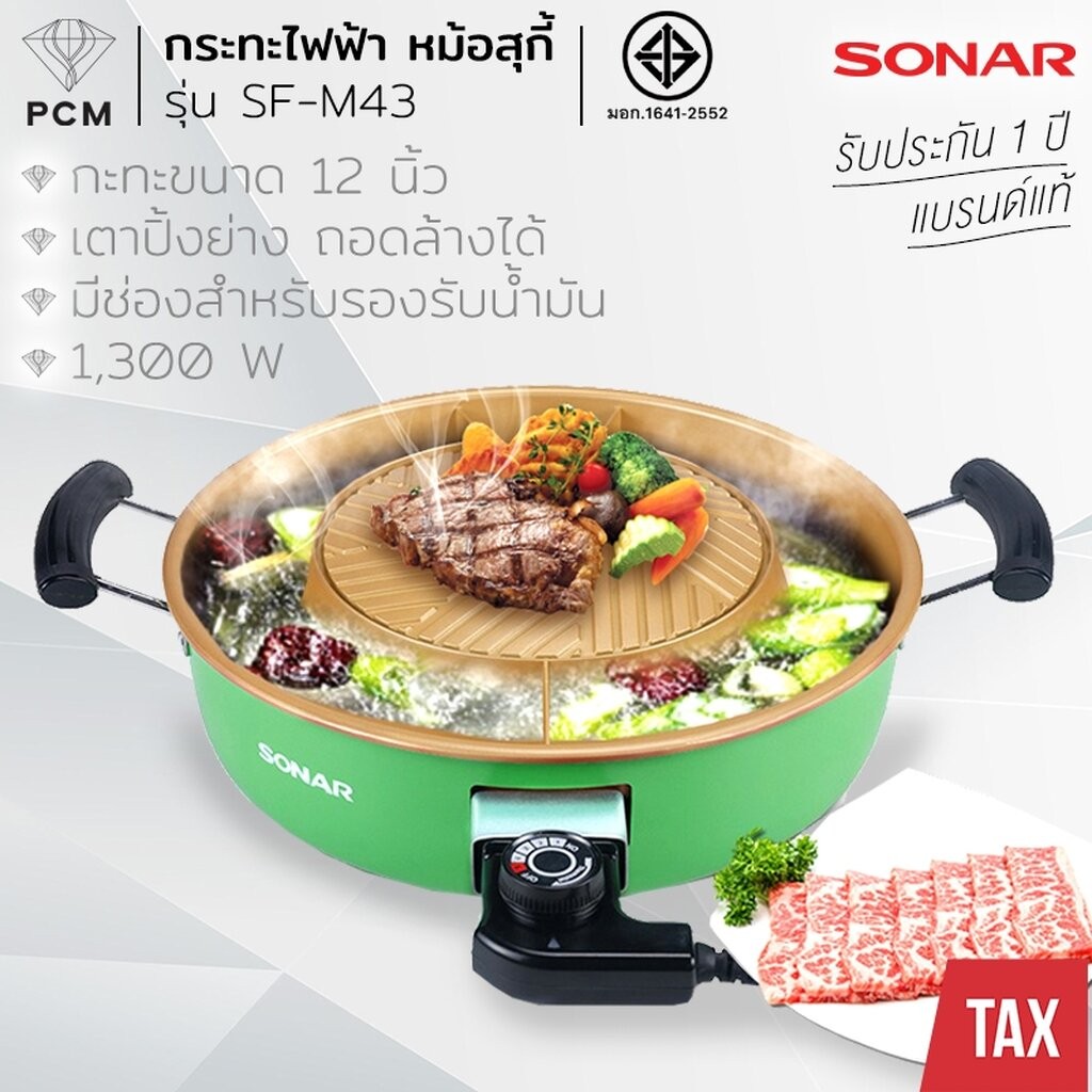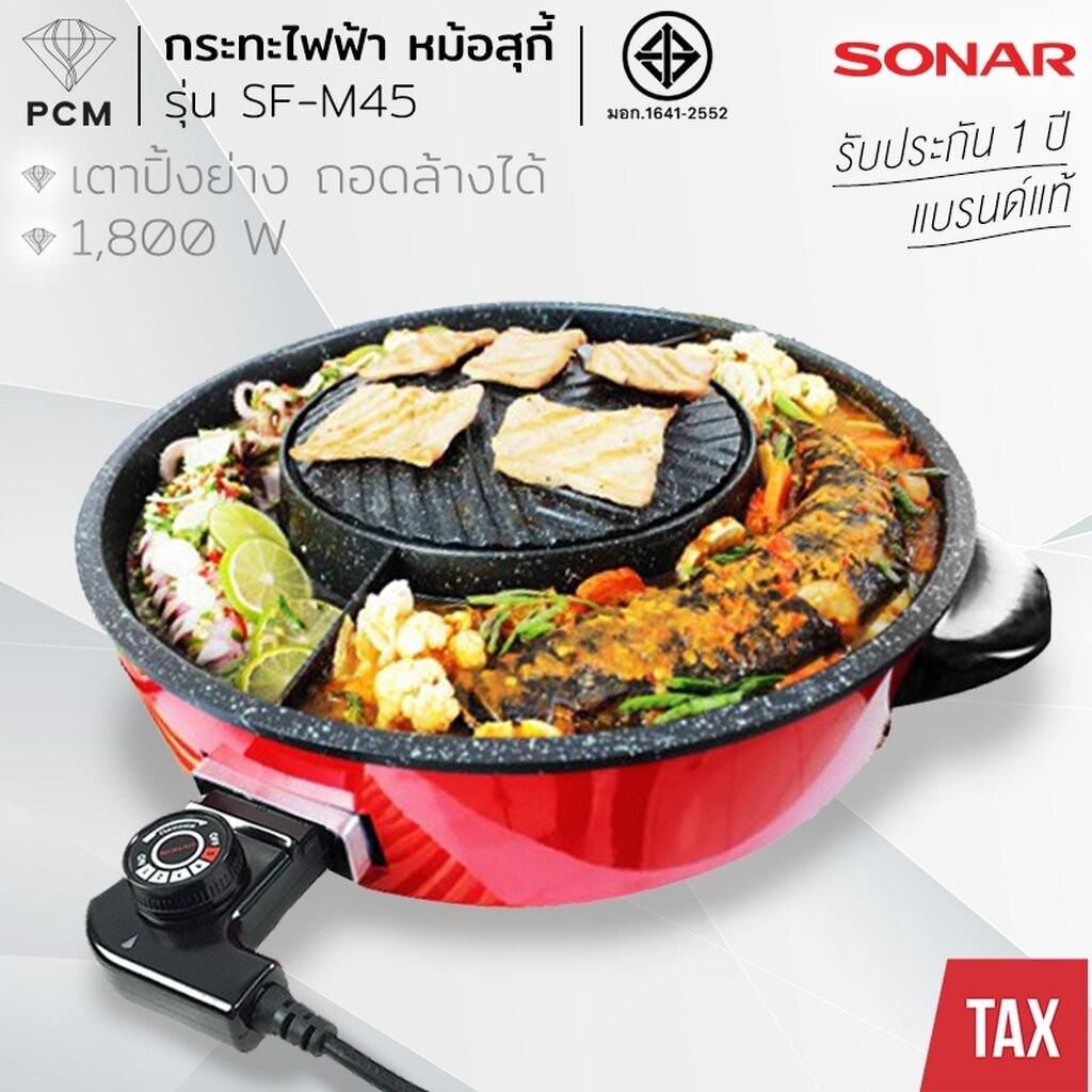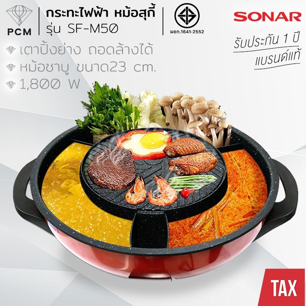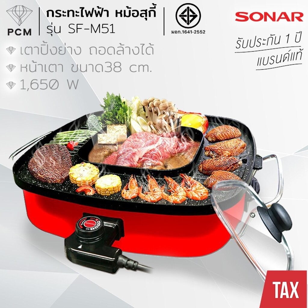SONAR (PCM) เตาปิ้งย่าง หมูกระทะปิ้งย่าง ถอดล้างได้ มีช่องแบ่ง ร้อนเร็วไม่ติดกระทะ รุ่น SF-M43 SF-M45 SF-M50 SF-M51