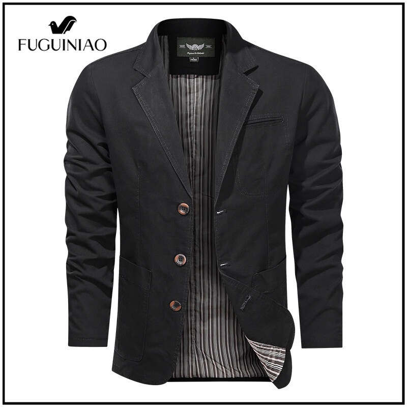 Fuguiniao เสื้อแจ็กเก็ตสูทลําลอง ทรงสลิมฟิต สําหรับผู้ชาย