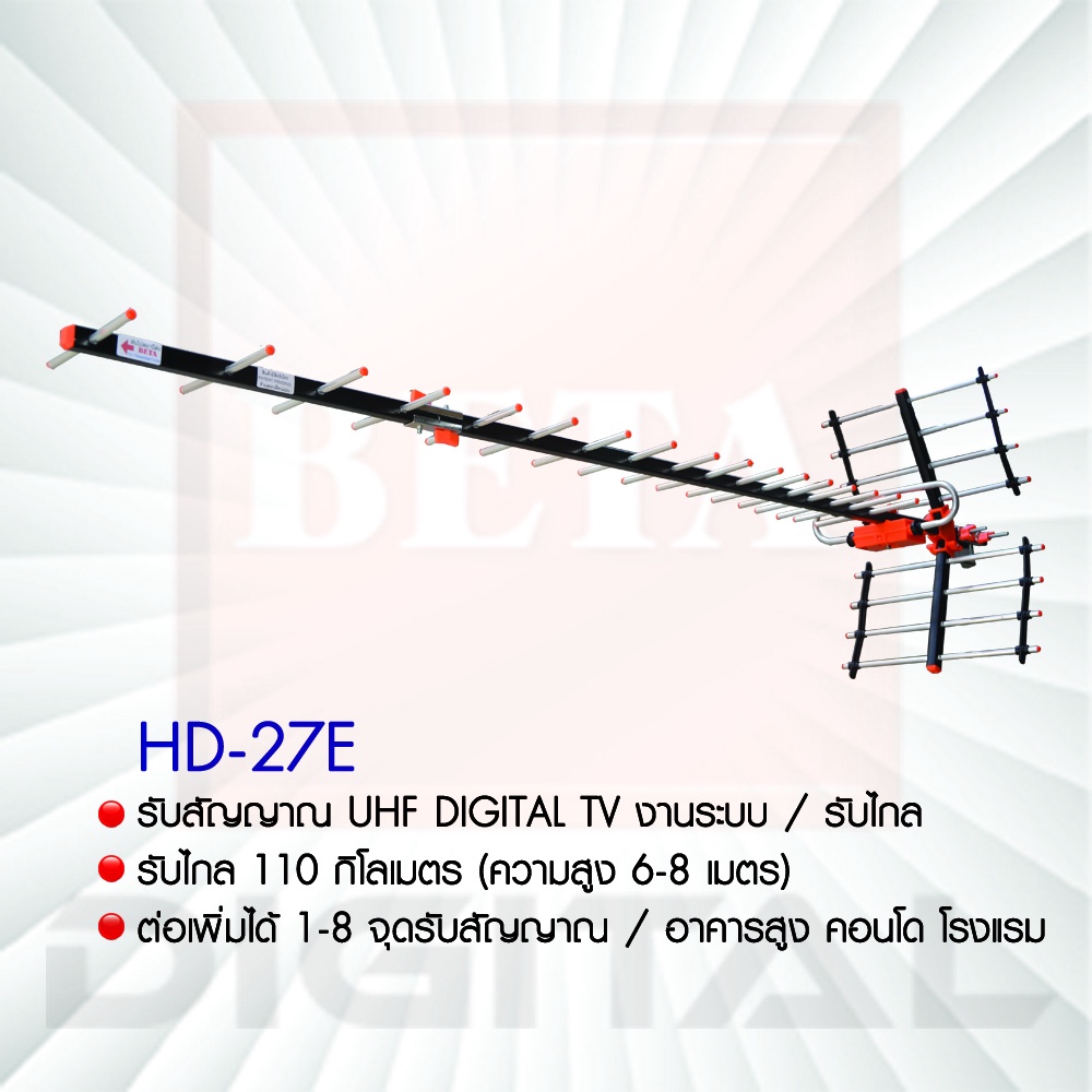 ชุดเสาอากาศดิจิตอลทีวี BETA HD-27E เดินระบบอาคาร 16 จุดรับชม