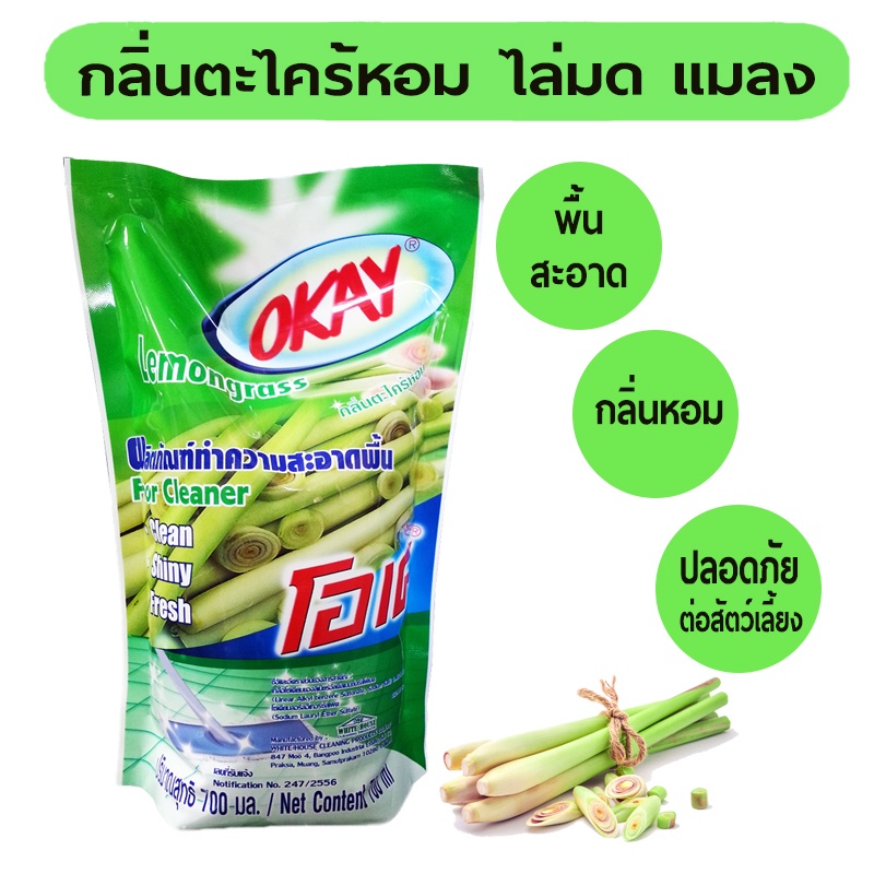 OKAY น้ำยาทำความสะอาดพื้น ไล่มด ไล่แมลง (FCG700) น้ำยาถูพื้น เช็ดพื้น กลิ่นตะไคร้ 1 ถุง 700 มล.
