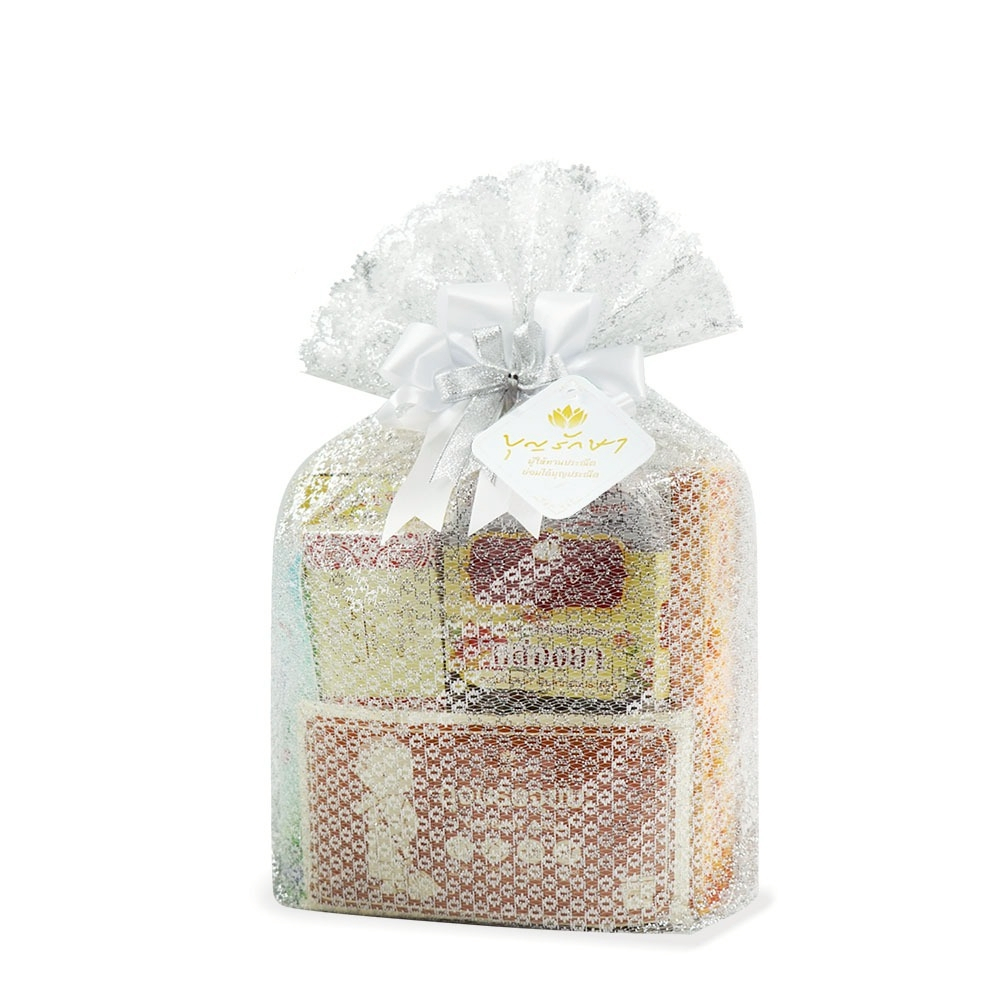 สังฆทานชุดตาข่าย S (ทอง,เงิน) by บุญรักษา | ชุดสังฆทาน ชุดถวายพระ เครื่องไทยธรรม งานบวช งานแต่ง วันเกิด งานครบรอบ