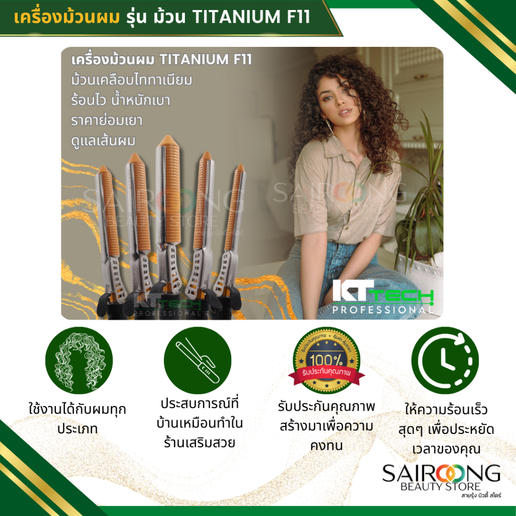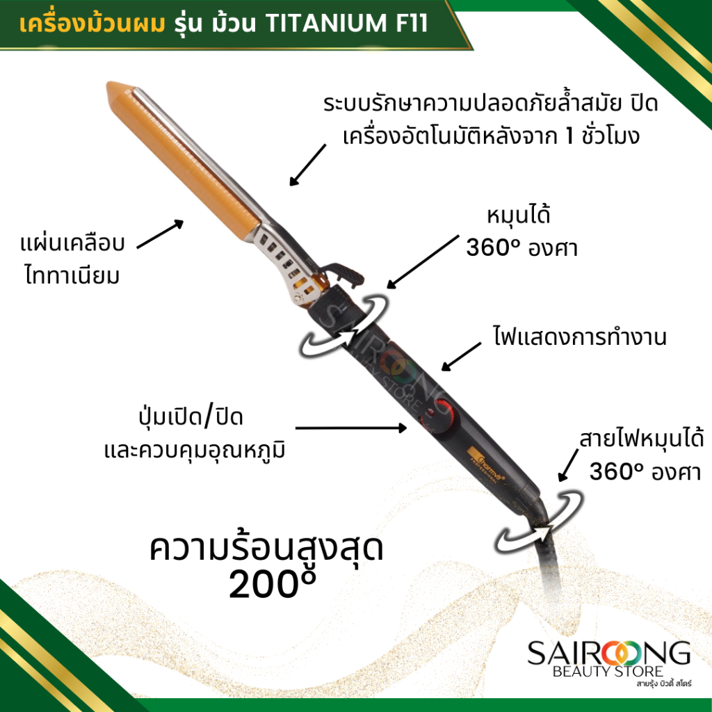 [มีส่งด่วน มีมอก.]เครื่องม้วนผมไทเทเนียม ทำลอนเด้ง รุ่น TITANIUM F11 มีขนาด 14 - 25