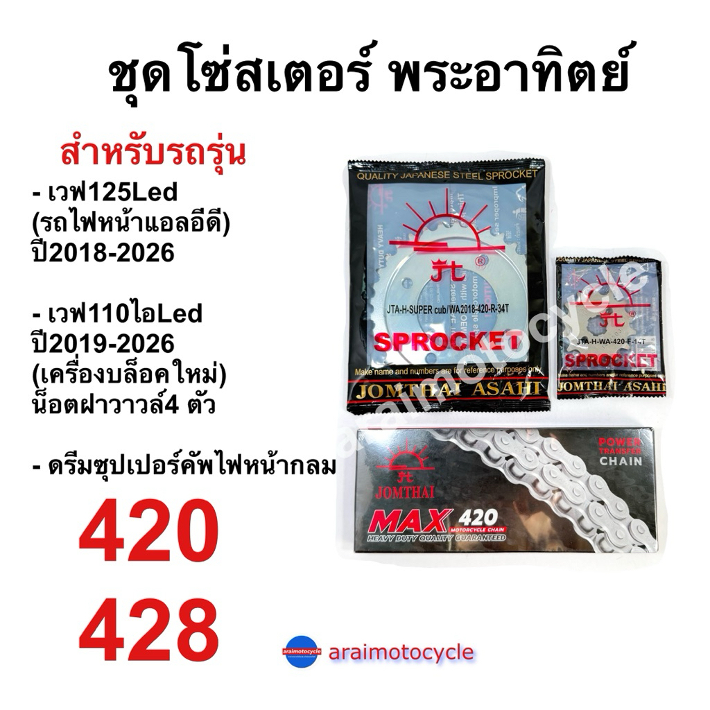ชุดโซ่สเตอร์พระอาทิตย์ เวฟ125LED เวฟ110ไอLED(19-25) ดรีมซุปเปอร์คัฟไฟกลม ครบชุด