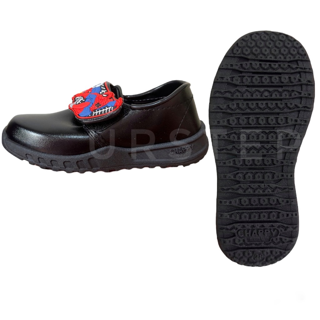 Chappy Spider รองเท้านักเรียนอนุบาลหนังดำ รองเท้าผ้าใบพละเด็กผู้ชาย สีขาว