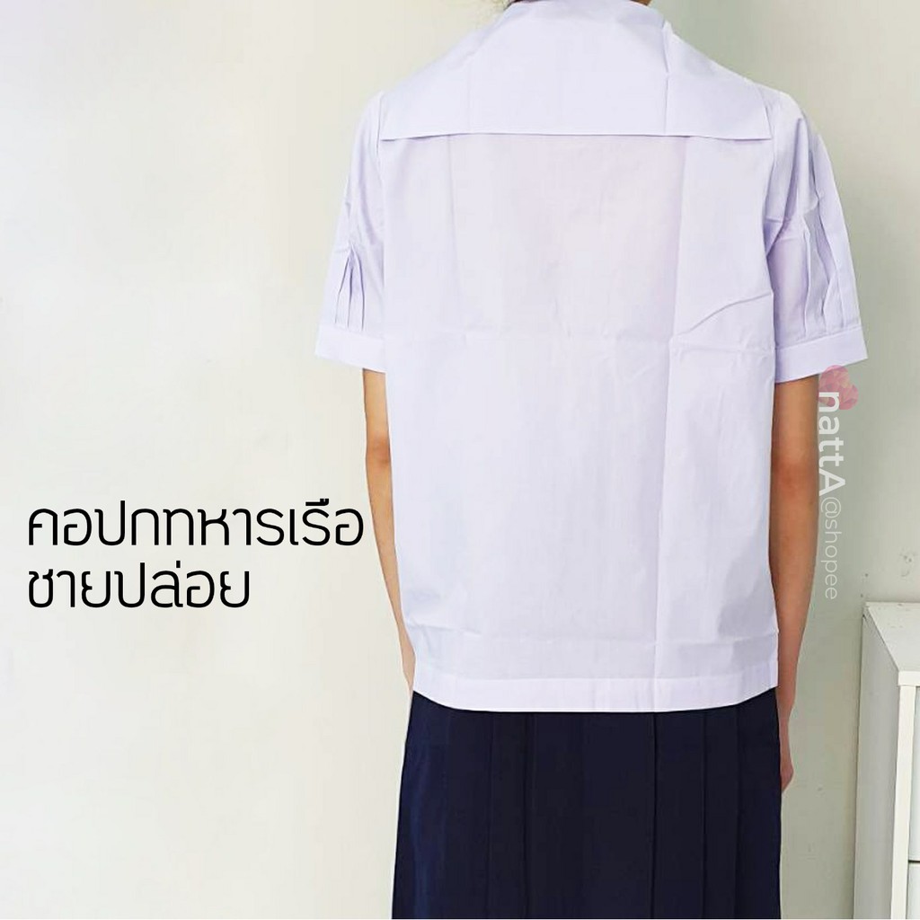 เสื้อนักเรียน ตราสมอ คอปกทหารเรือ - ผู้หญิง ประถม มัธยม ชุดนักเรียน แขนพองกระเป๋าล่างใส่สวมหัว แขนตุ๊กตา มีบิล