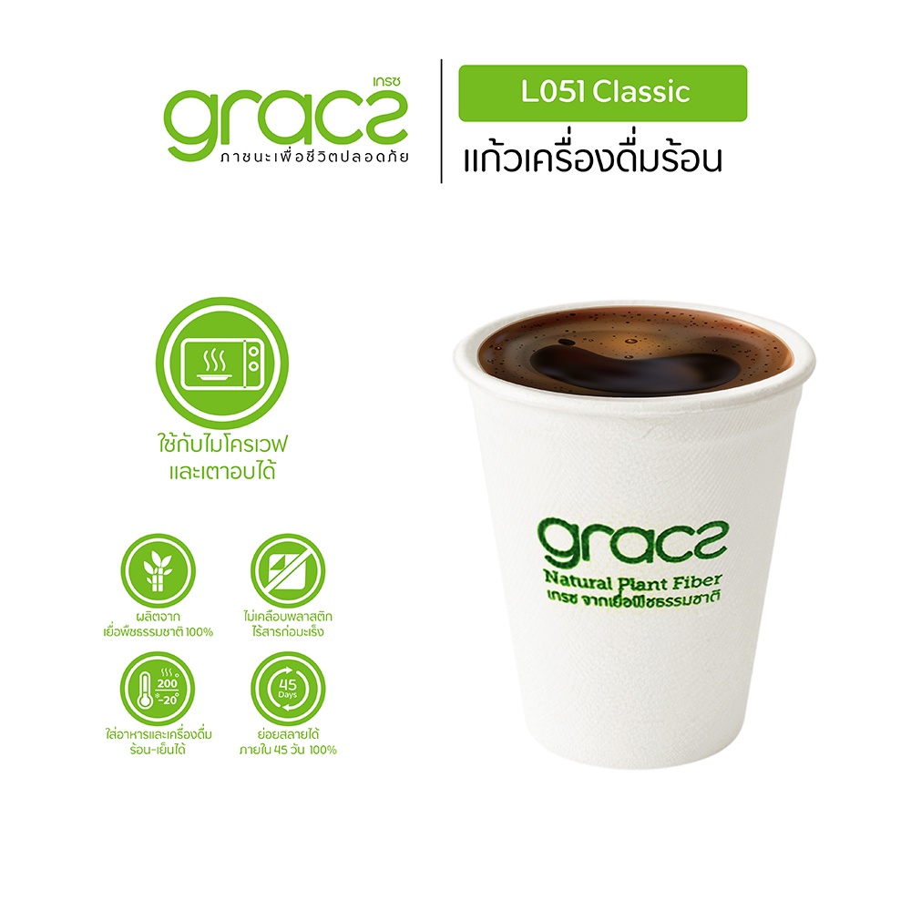 (แพ็ก 10 ชิ้น) GRACZ แก้วน้ำ จากเยื่อพืชธรรมชาติ 260 ml. รุ่น L051 (เกรซ คลาสสิก) แก้วกระดาษ ชานอ้อย เข้าไม