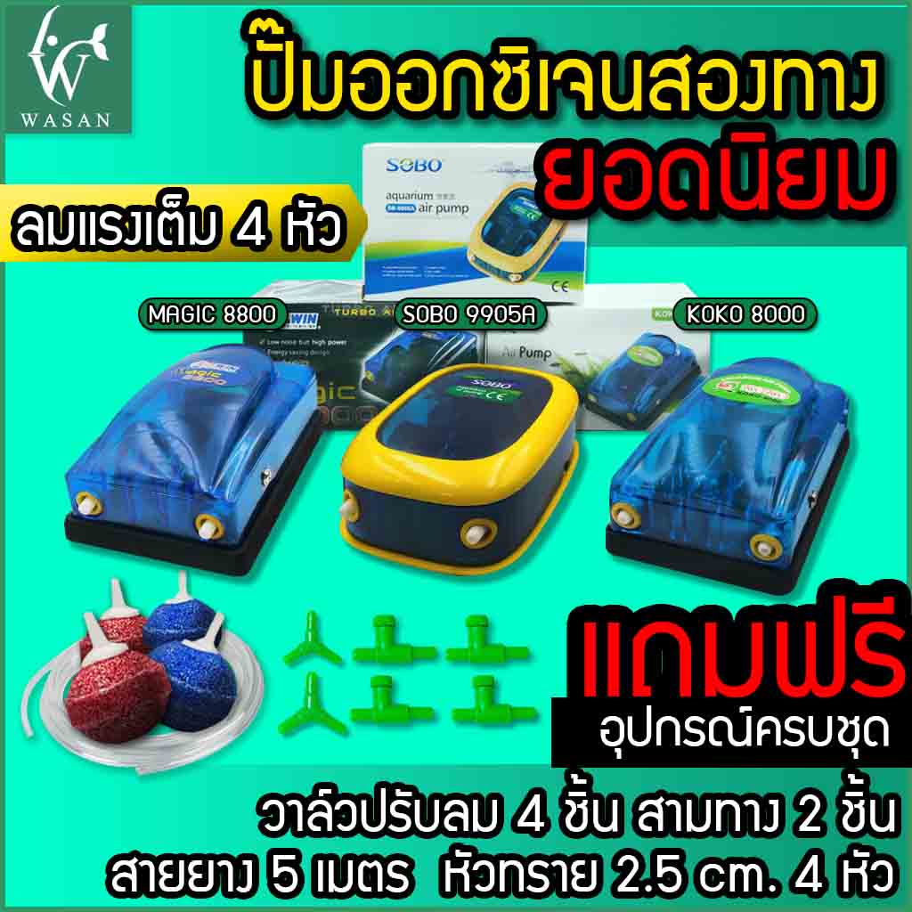 ปั้มออกซิเจนสองทาง ยอดนิยม / SOBO SB-9905A / MAGIC 8800 / KOKO 8000 พร้อมอุปกรณ์ครบชุด