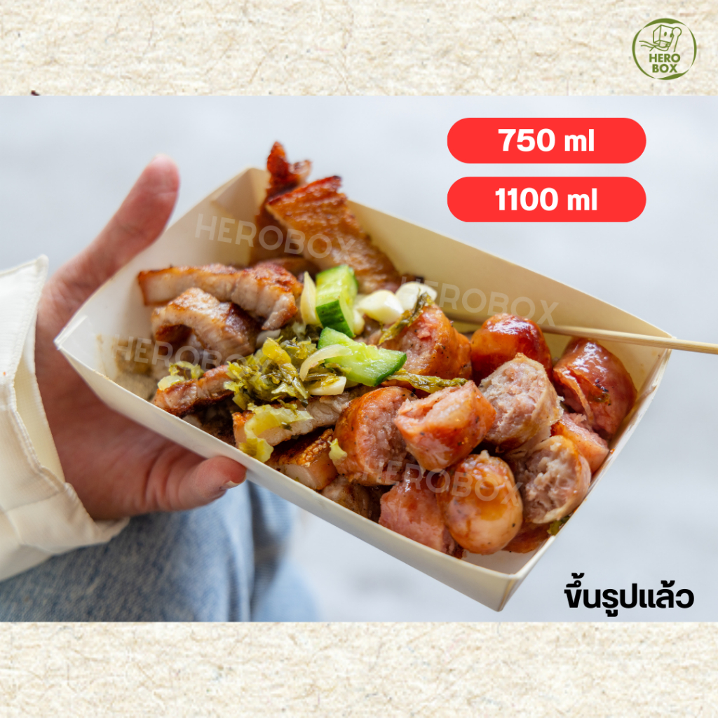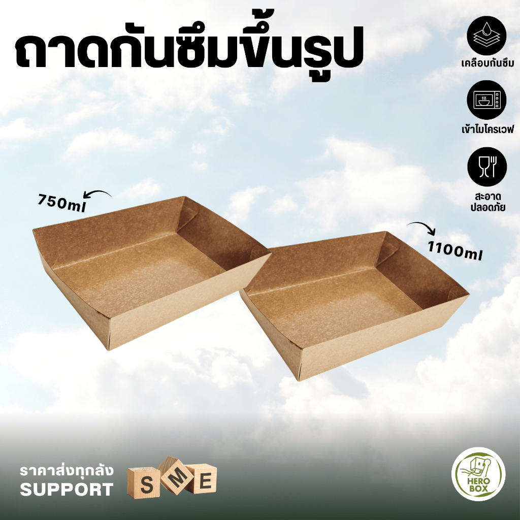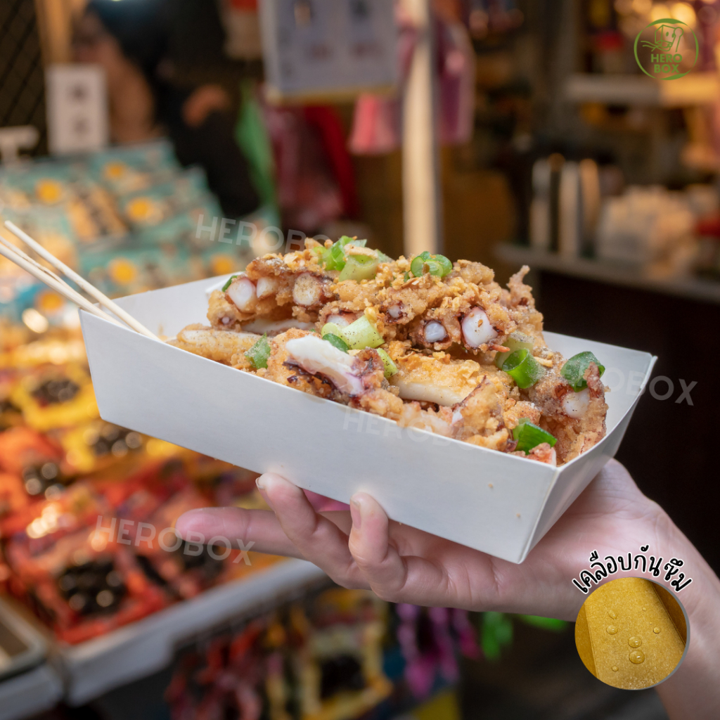 【HeroBox】50ใบ ราคาโรงงาน ถาดกระดาษ ถาดขนม ถาดอาหาร ใช้แล้วทิ้ง เคลือบ PE กันซึม ขึ้นรูปให้แล้ว