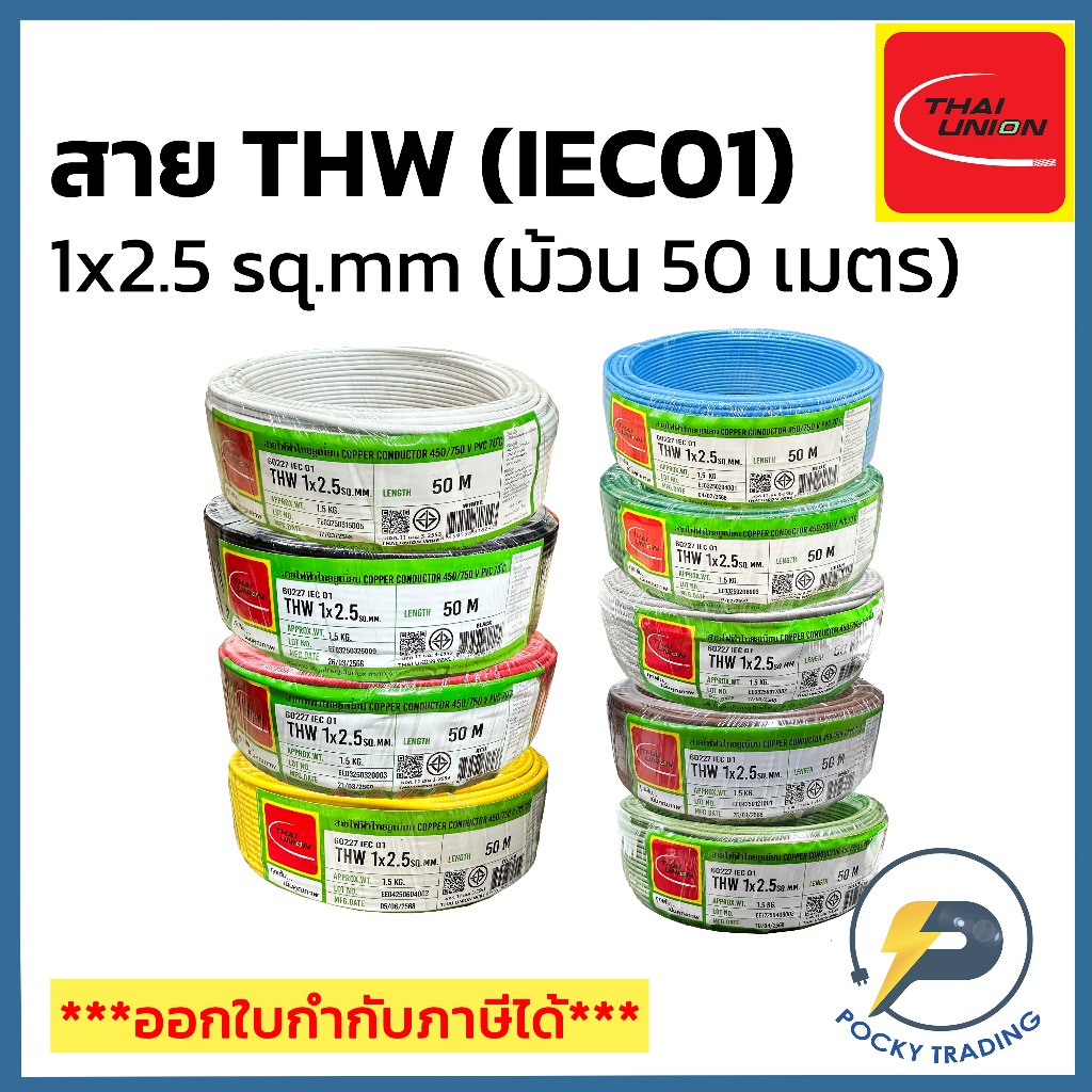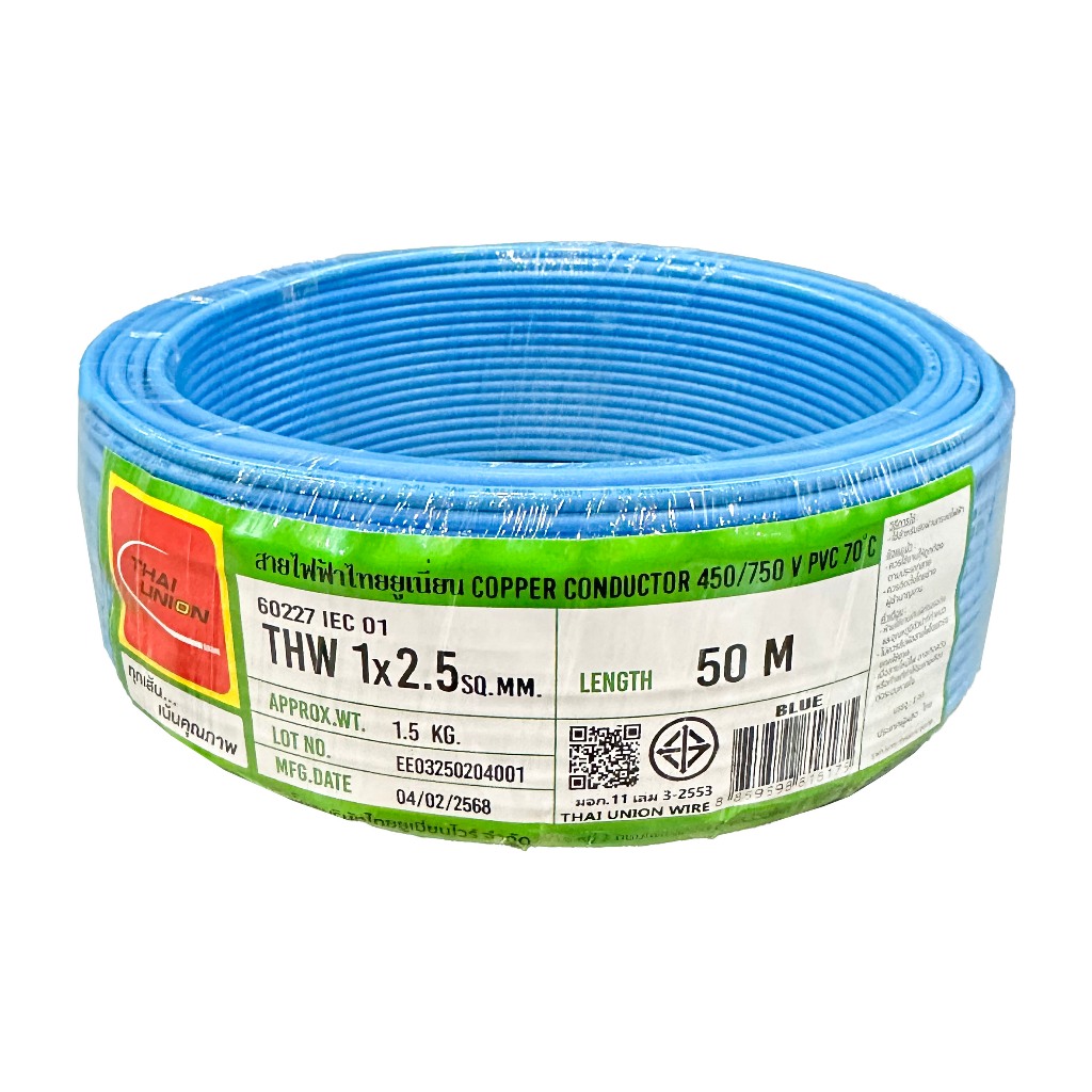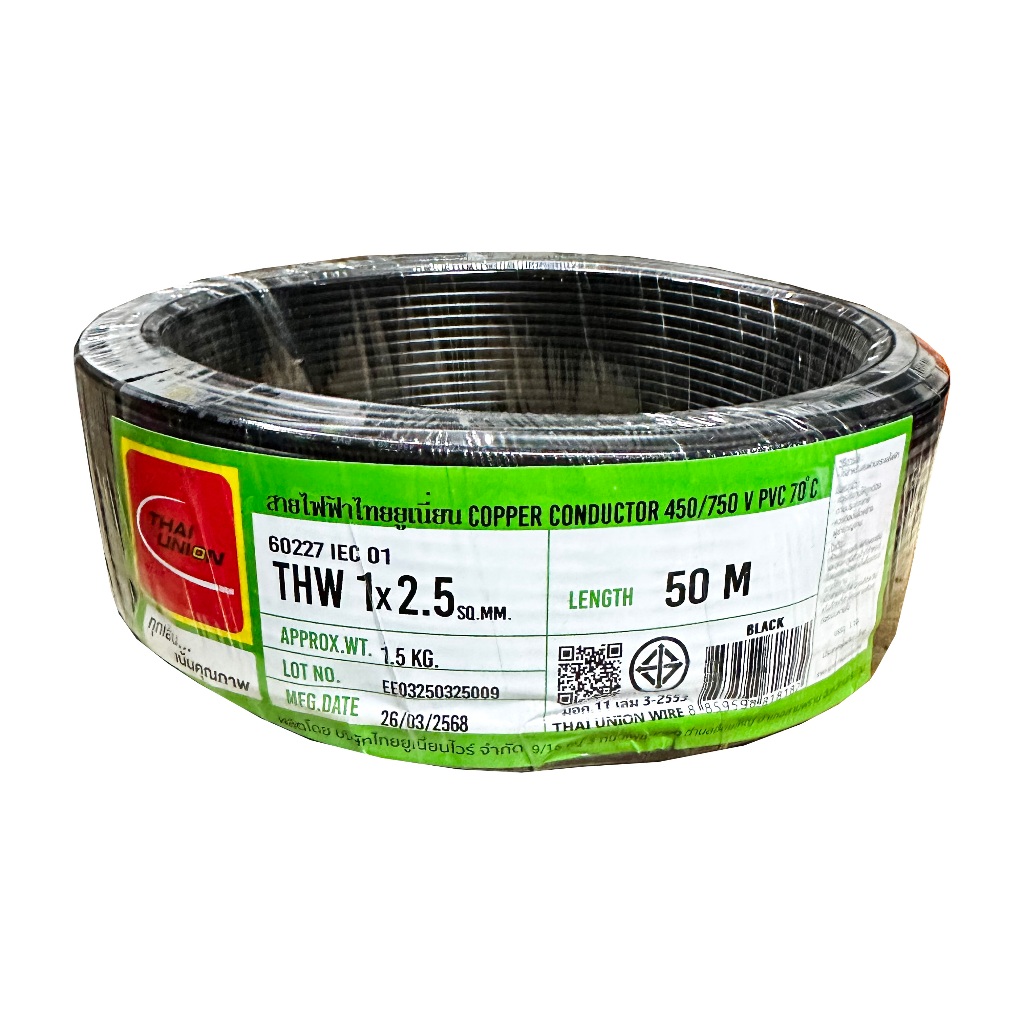 THAI UNION สายไฟทองแดง THW 1x2.5 SQ.MM (ม้วน 50 เมตร)