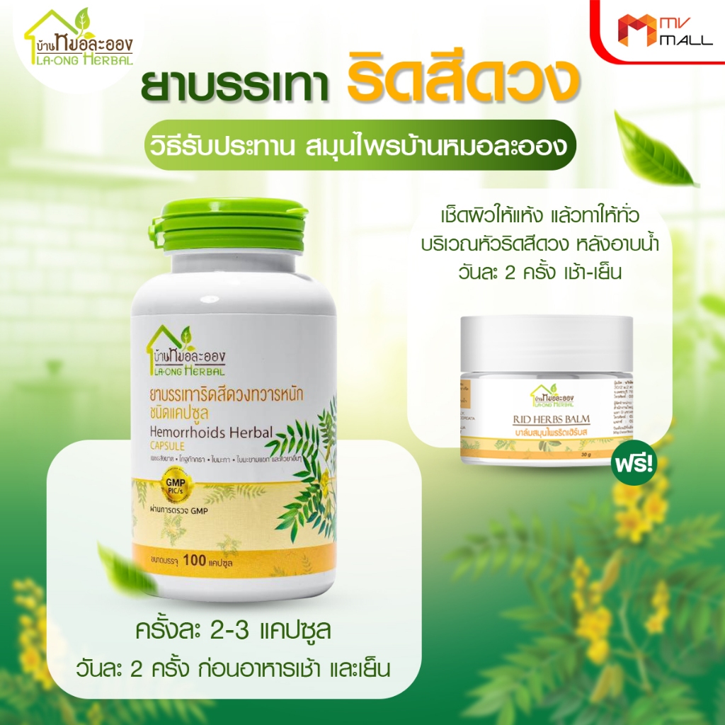 [2 กระปุก แถมฟรี บาล์มริดเฮิร์บ 1 กระปุก] หมอละออง อาหารเสริมบรรเทาริดสีดวง สมุนไพรริดสีดวง