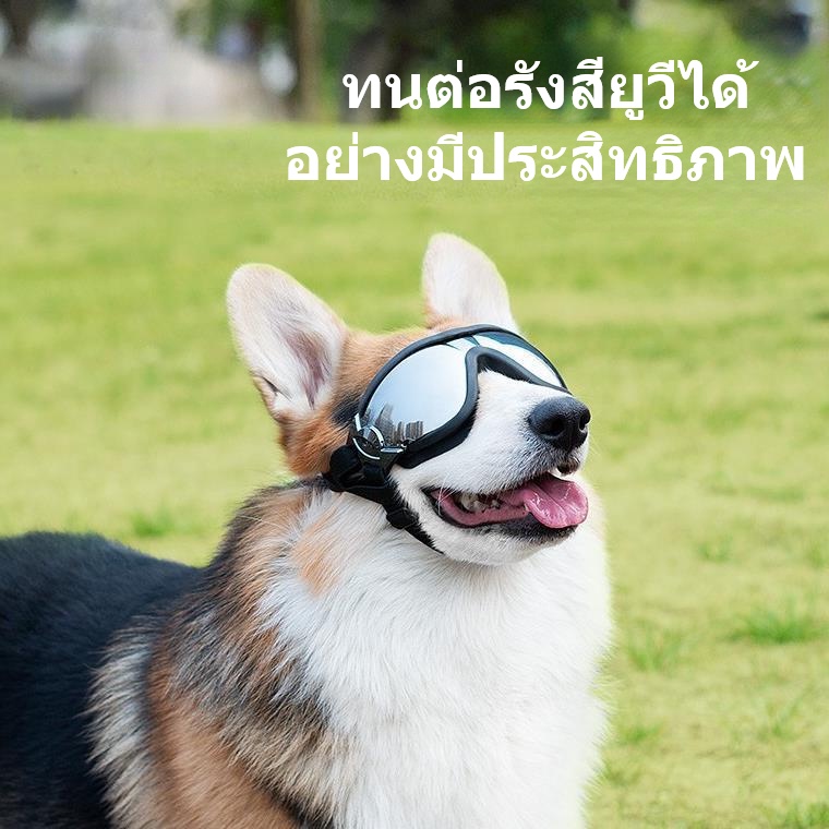SKISOPGO แว่นตาสุนัข แว่นตาสุดเท่ หมาใหญ่ กันแดดกันลม สายปรับขนาดได้ แว่นกันแดดสุนัข