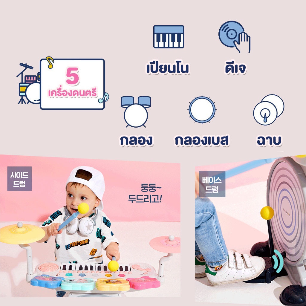 [สินค้าขายดี] HaaveBricks ชุดเครื่องดนตรี สำหรับเด็ก 5 in 1 เปียโน ไมค์โครโฟน กลอง ต่อ Bluetooth ได้