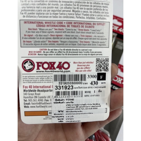 นกหวีด FOX40 รุ่น 331923 Epik CMG ความดัง 115dB ของแท้ 💯%
