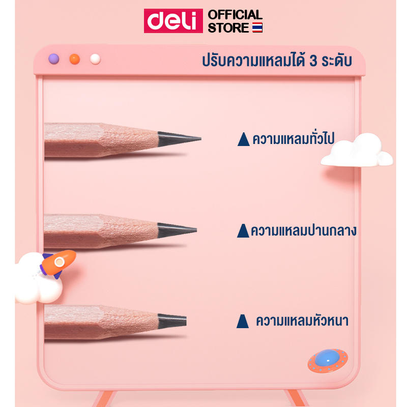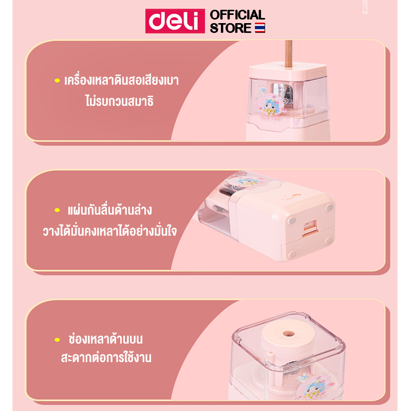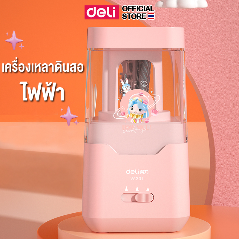 เครื่องเหลาดินสอไฟฟ้า Deli รุ่น VA201 ใช้พลังงานถ่าน กบเหลาดินสออัตโนมัติสีชมพู (จำหน่าย 1 เครื่อง)