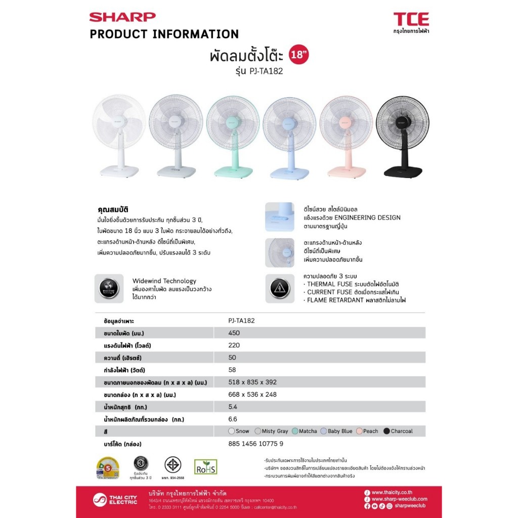 SHARP พัดลมตั้งโต๊ะ 18 นิ้วรุ่น PJ-TA181 ; PJ-TA182 (ของแท้รับประกันศูนย์นาน 3 ปี)