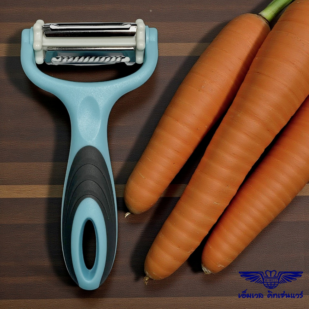 M Well Kitchenware ที่ปอกเปลือกผักและผลไม้อเนกประสงค์สีฟ้า ใบมีดหมุนปรับได้3รูปแบบ