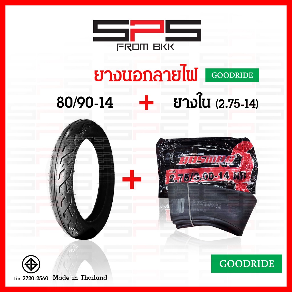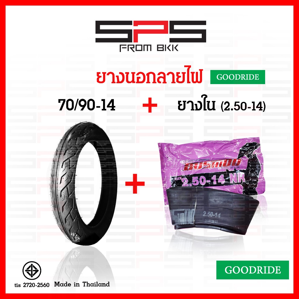ยางนอกลายไฟ Goodride ขอบ14 เบอร์ 70/90 80/90 90/90 ยางนอกลายไฟขอบ14 ยางนอกฟีโน่ มีโอ ยางนอกมอเตอร์ไซค์ Goodride SP