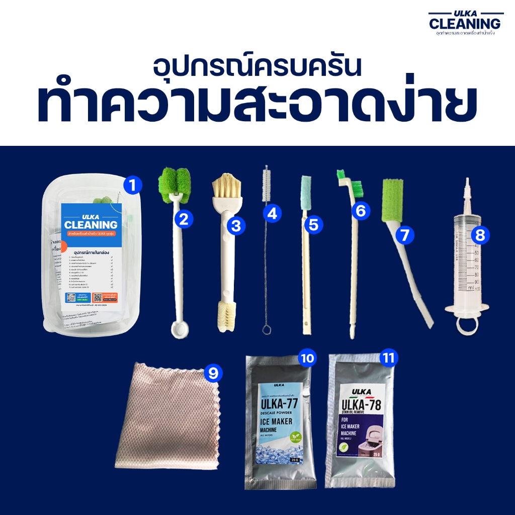 ULKA ชุดทำความสะอาด เครื่องทำน้ำแข็ง แปรงล้าง น้ำยาล้างตะกรัน ใช้ได้ทุกยี่ห้อ ทุกรุ่น Ice Maker Cleaning Set ครบชุด