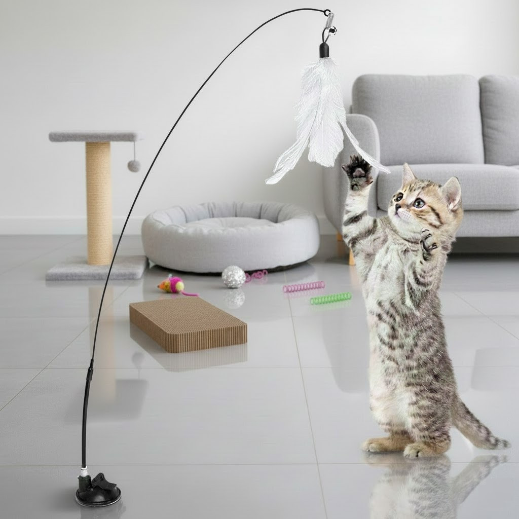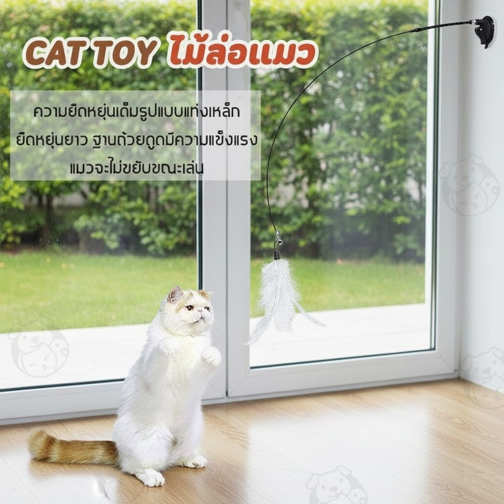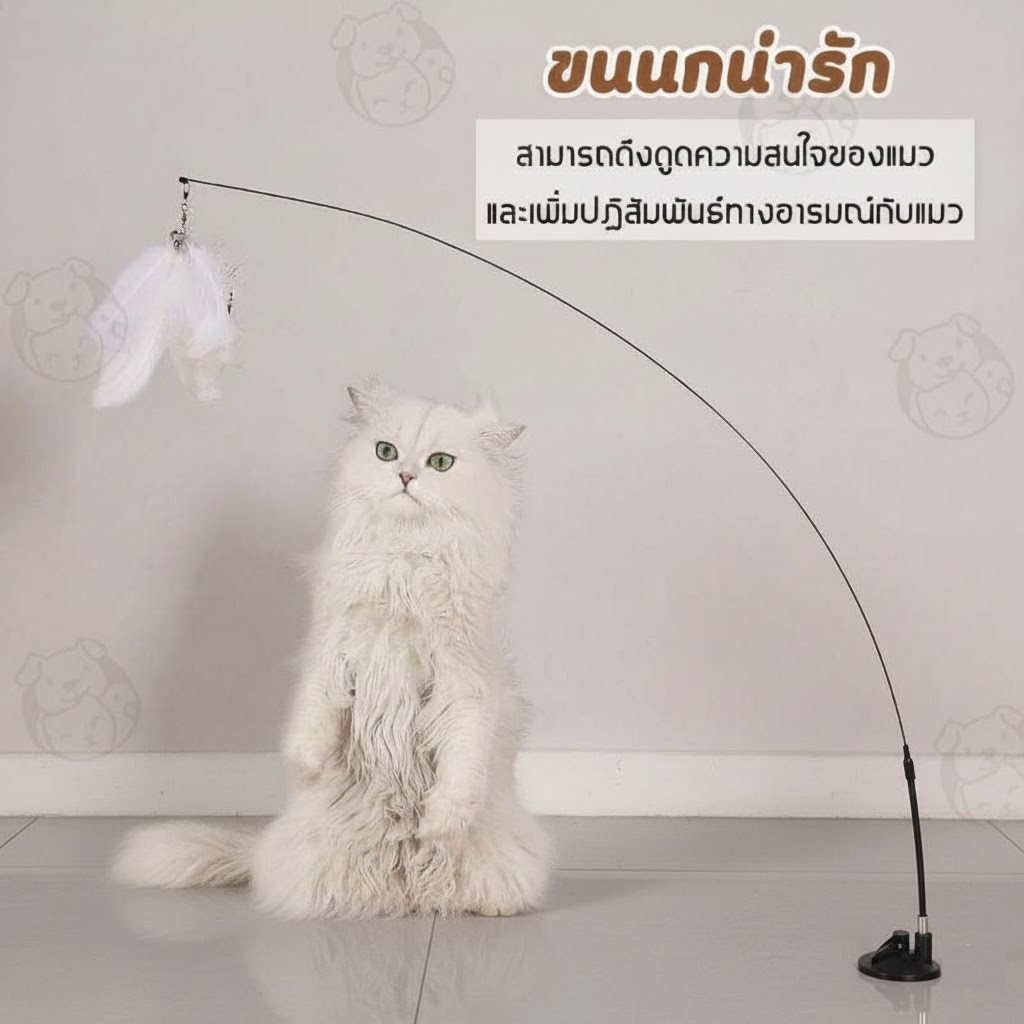 ของเล่นแมว ไม้ตกแมวพร้อมขนนกและกระดิ่ง รุ่นฐานดูดติดพื้น/กระจก ราคาถูก พร้อมส่ง