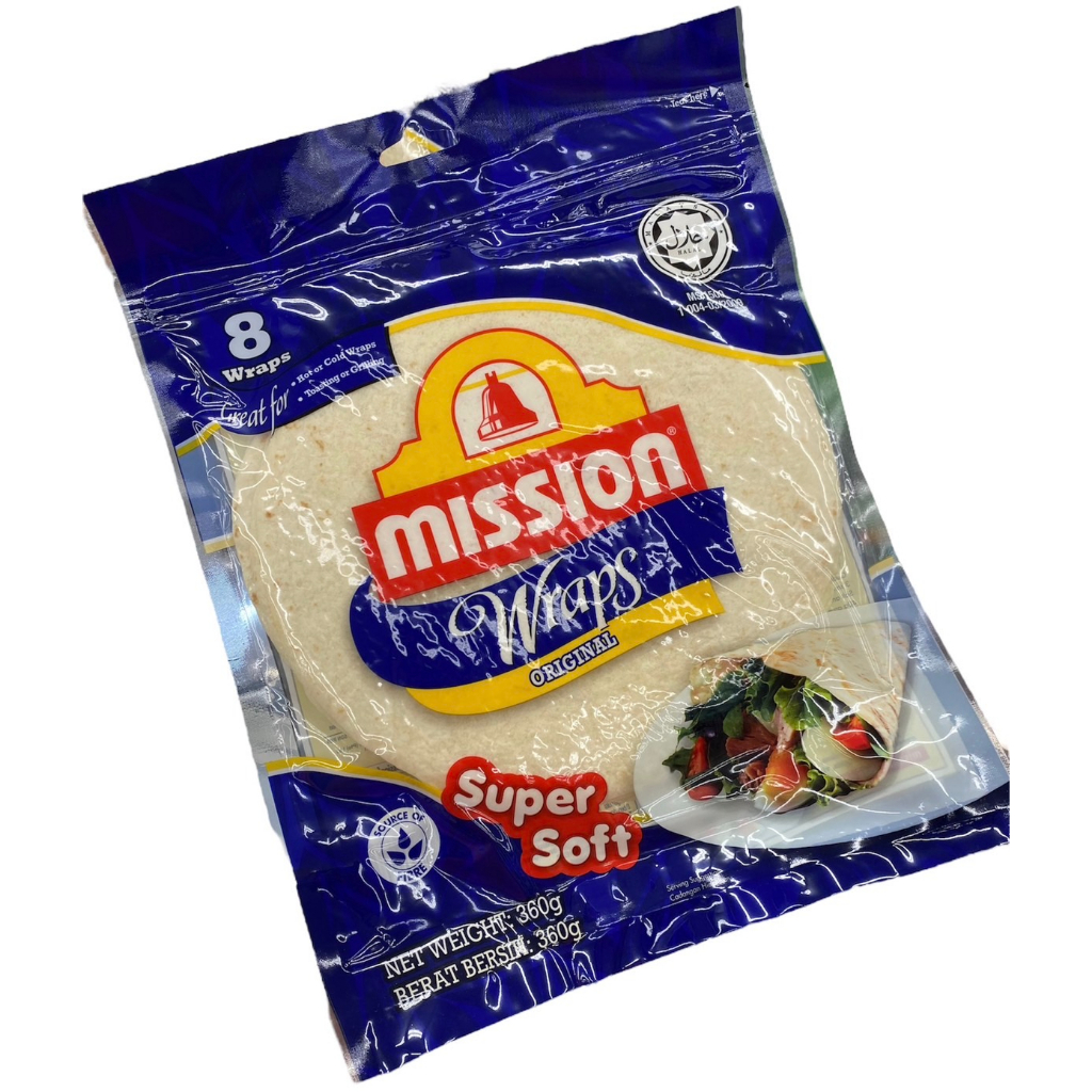 Mission Wraps Naan Pita สินค้ามีอายุ2-3เดือน แป้งแรป แผ่นแป้งสาลีสำเร็จรูป 360 กรัม ทาโก้ ตอติญ่า
