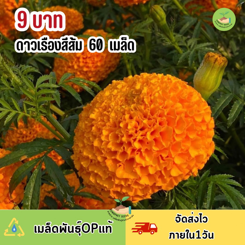 พิเศษ 9 บาท ‼️เมล็ดพันธุ์ ดอกดาวเรืองสีส้ม บรรจุ 60 เมล็ด