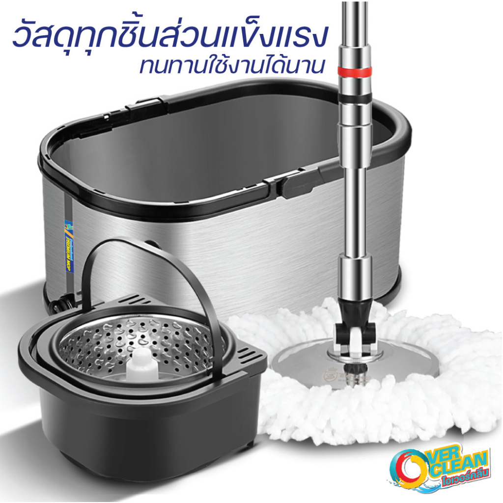 ม็อบถูพื้นสแตนเลสแท้ overclean ด้ามใหม่ยาวสะใจ