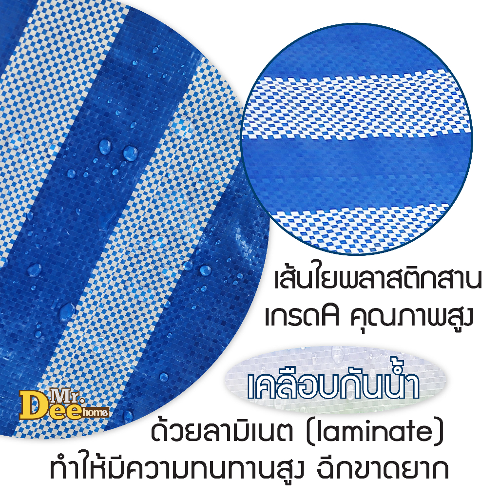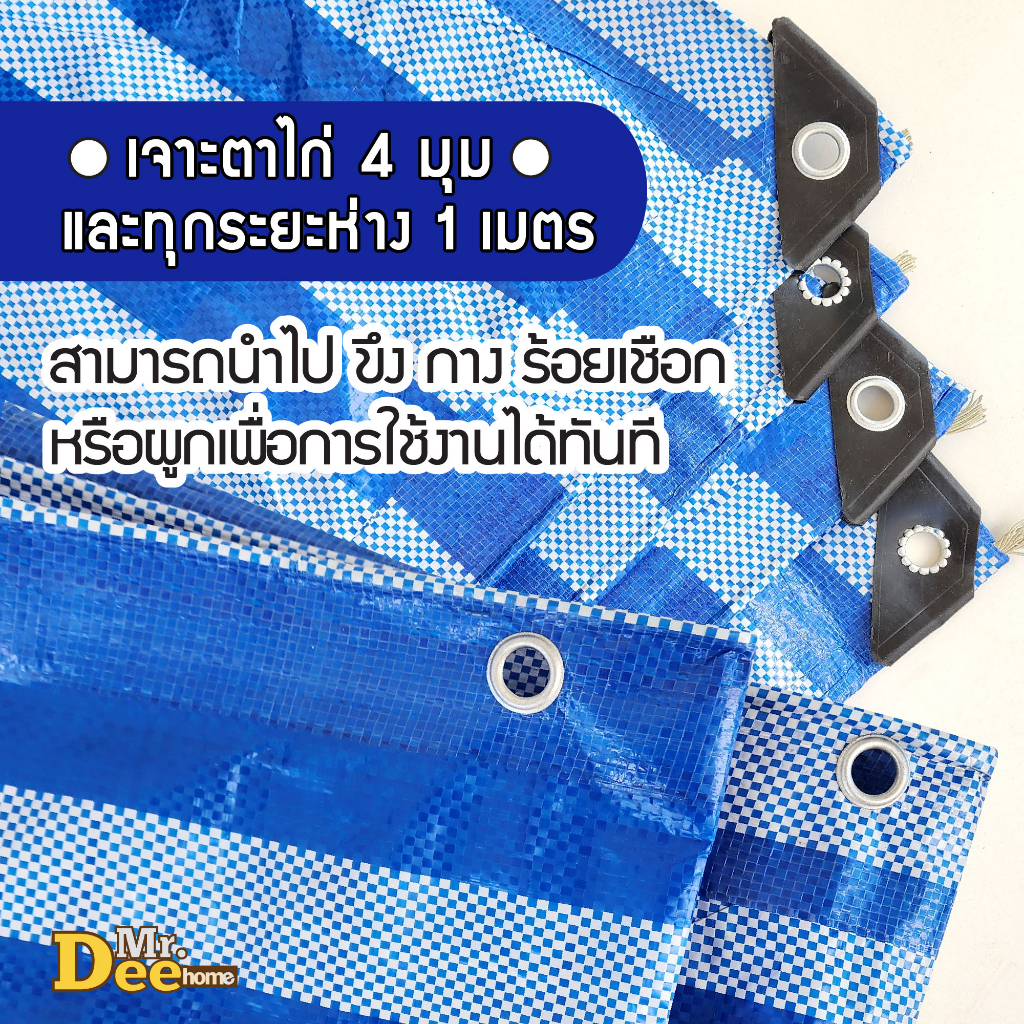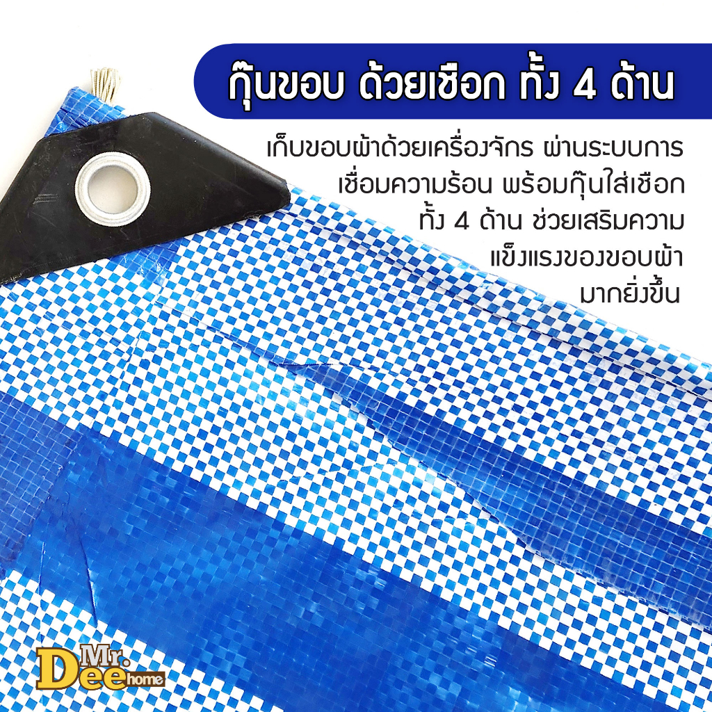 ผ้าฟางบูลชีทผืน ขนาด 2x3เมตร 3x4เมตร 4x5เมตร เคลือบกันน้ำ สีฟ้าสลับสีขาว คลุมกันฝน กันแดด รองพื้นเต้นท์ มีตาไก่ 4มุม