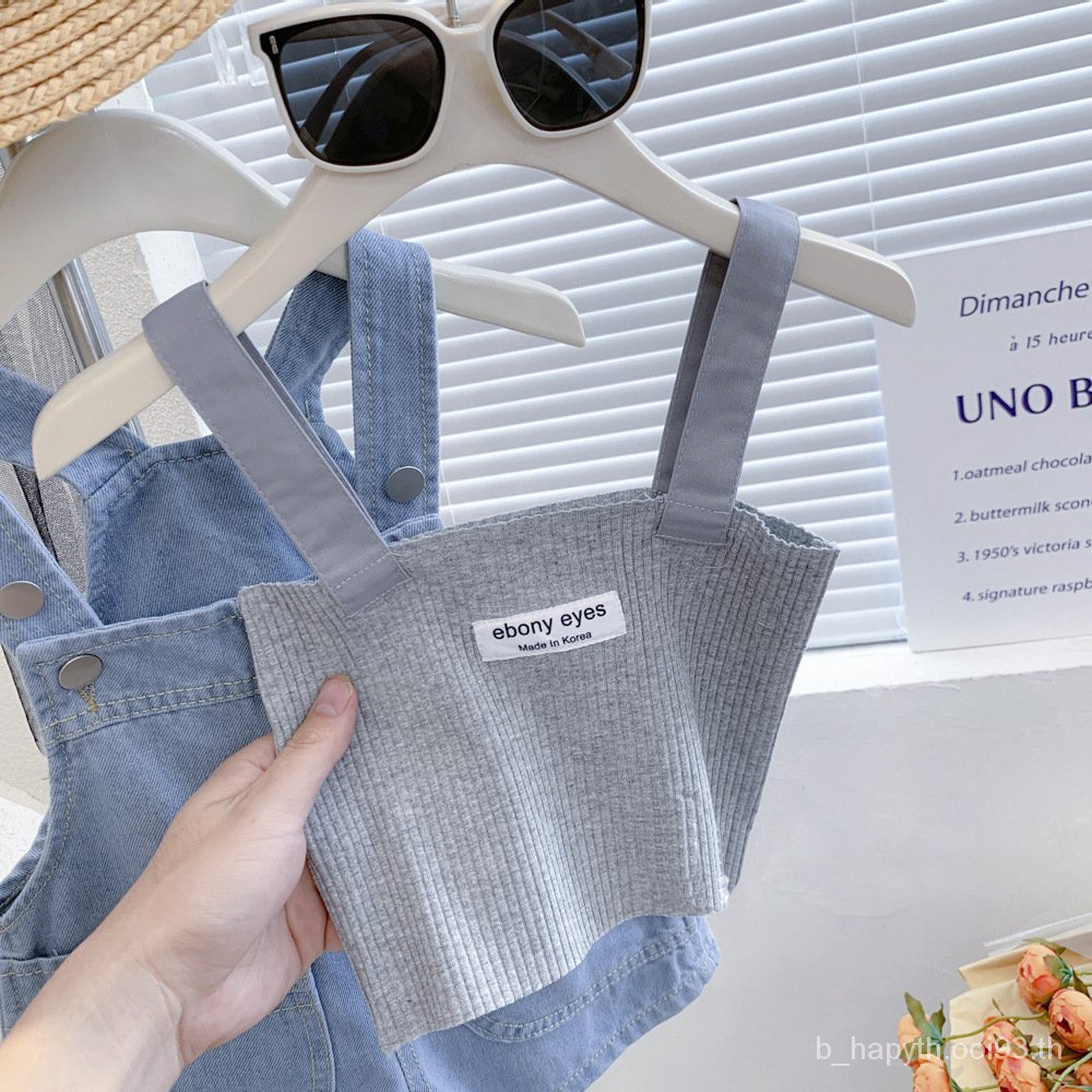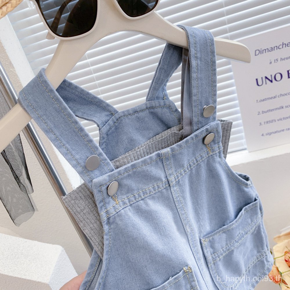 กางเกงเอี๊ยมผ้ายีนส์เด็กผู้หญิงกางเกงขาสั้นเด็กเกาหลีกางเกงห้าส่วนทรงหลวมสำหรับเด็กผู้ชายและผู้หญิงกางเกงลำลองSL7523