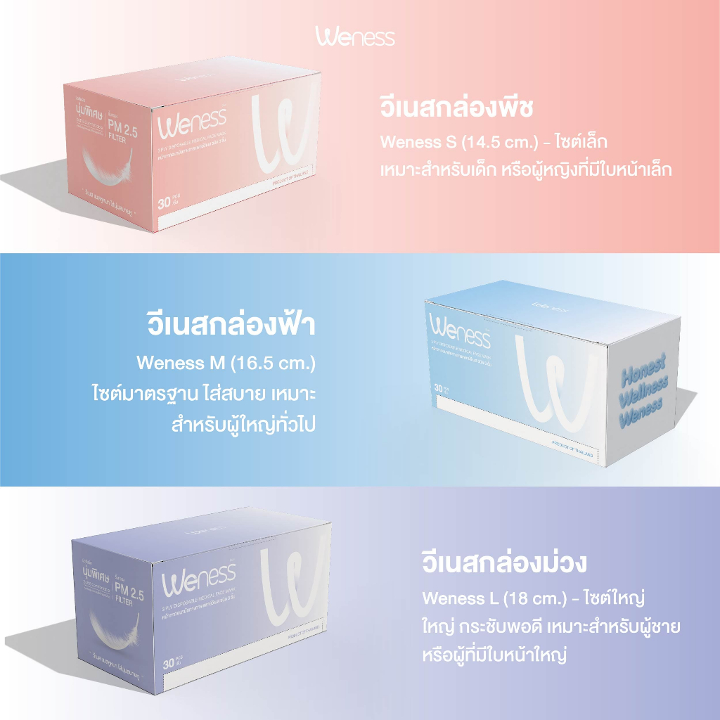 Weness วีเนสหน้ากากอนามัย รุ่นวีเเคร์ (Size S) หูหนา นุ่มพิเศษ ไม่เจ็บหู แพ็คแยกซอง อ่อนโยนต่อผิวหน้า