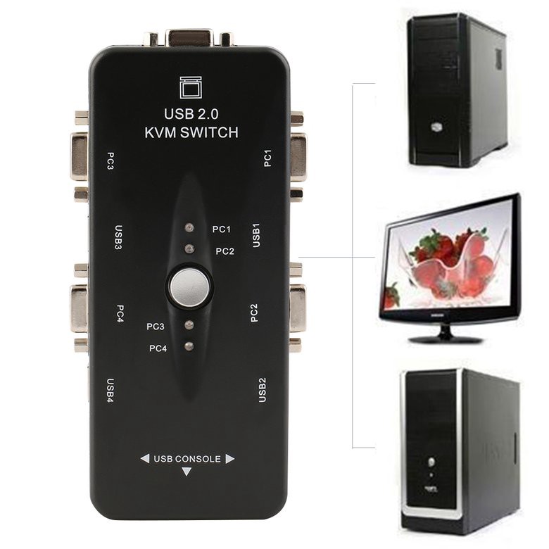 กล่องสวิตช์ KVM 4 พอร์ต USB 2.0