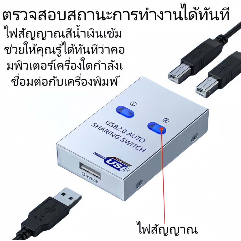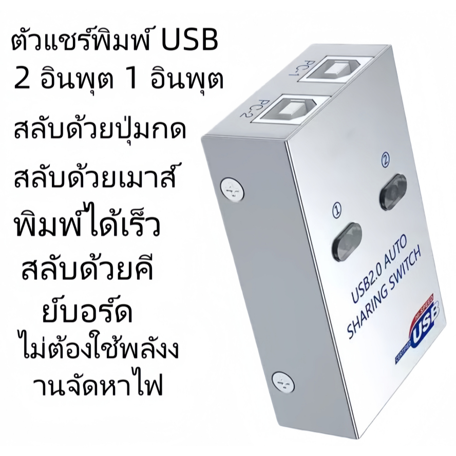 2 Ports USB 2.0 Manual Share Sharing Switch กล่องแยกสัญญาณสำหรับเครื่องพิมพ์ PC (ออโต้)