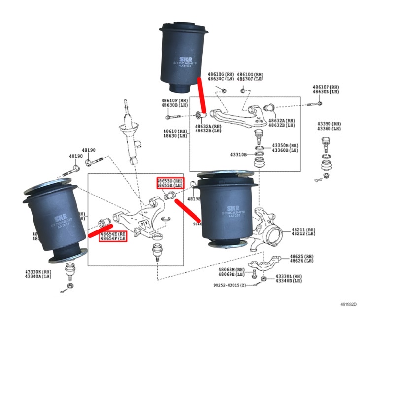 SKR JAPAN บูชปีกนกบน-ล่าง TOYOTA VIGO, REVO, INNOVA ปี 03-2022 2WD ตัวเตี้ย HAKOTORA