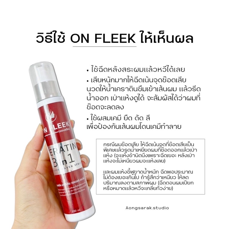 Onfleek keratin ออนฟลีค สเปรย์เซรั่ม แชมพู มาส์กผมเคราติน ฟื้นฟูผมช็อต ล็อกสีผม ลดผมชี้ฟูให้มีน้ำหนัก
