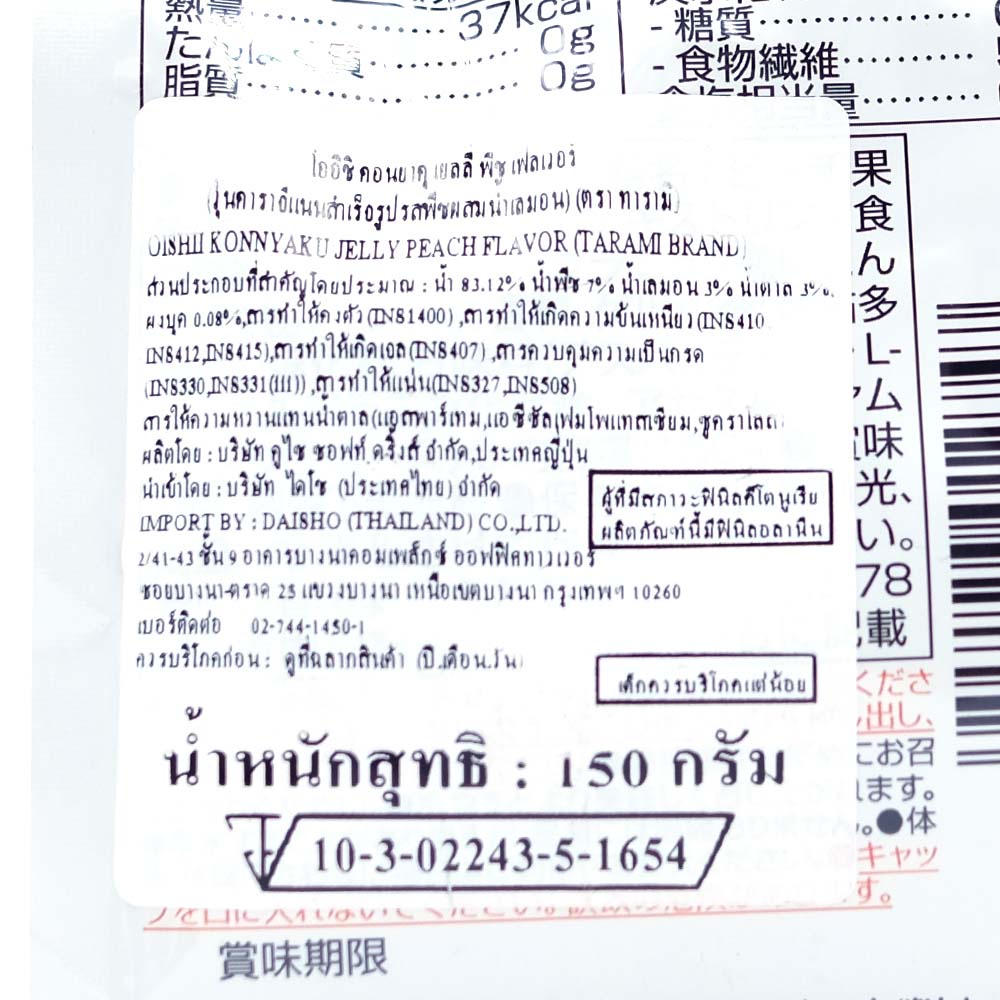 ทารามิ เยลลี่พร้อมดื่ม รสพีช ขนาด 150 กรัม - Tarami Oishii Konnyaku Jelly Peach Flavor