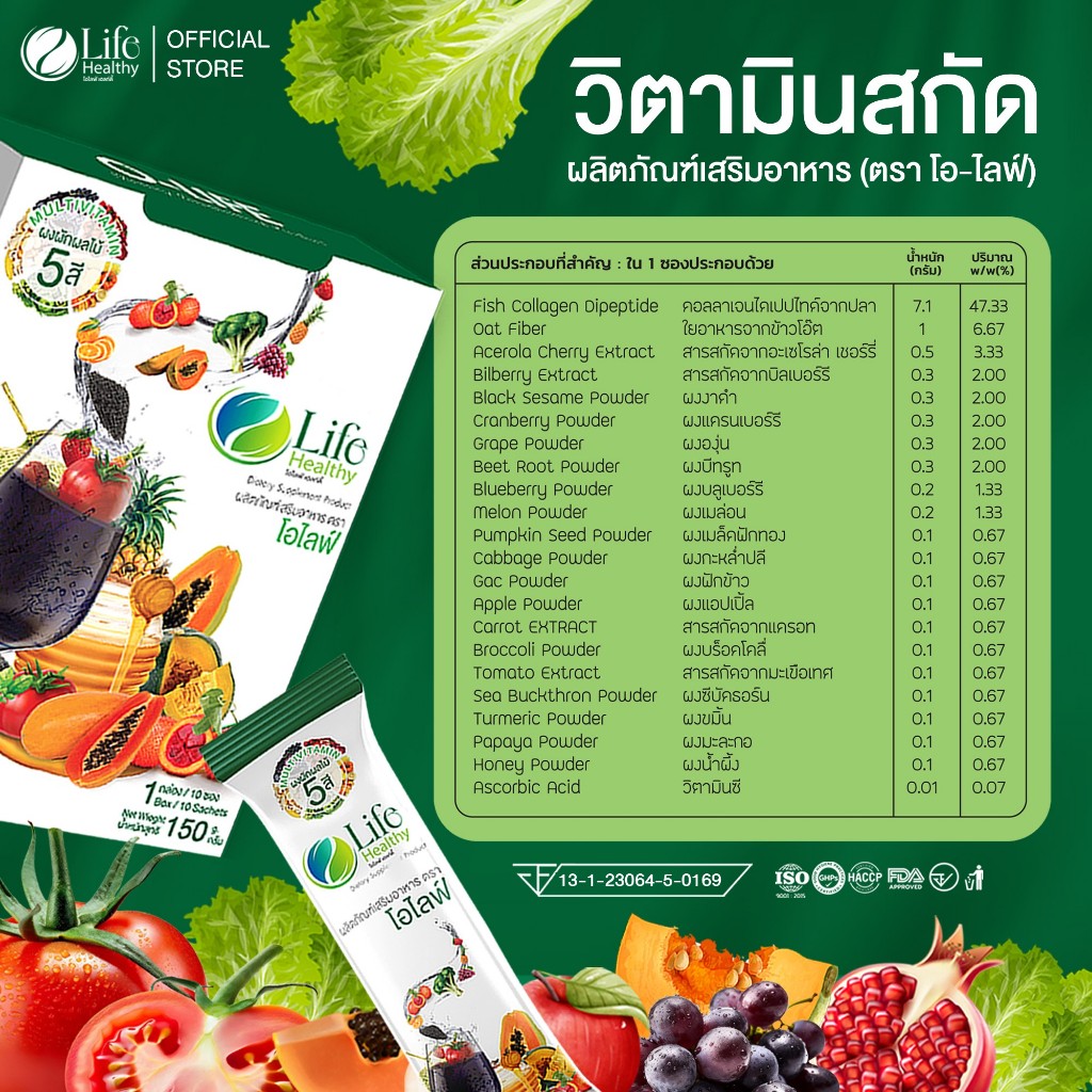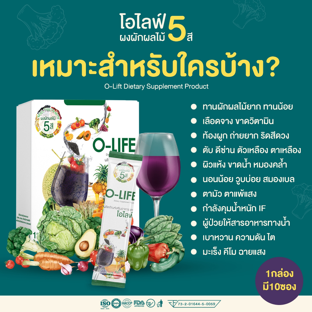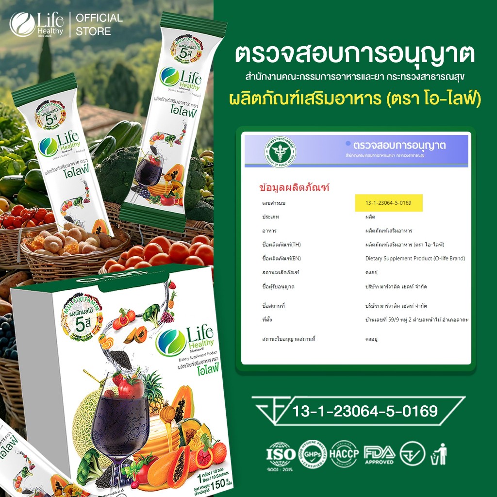O-life โอไลฟ์ มัลติวิตามินรวม ผงผักผลไม้5สี เพื่อสุขภาพ ระบบขับถ่าย มีคอลลาเจน ใยอาหาร 1 กล่อง10 ซอง