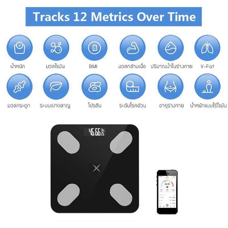 เครื่องชั่งน้ำหนักดิจิตอล อัจฉริยะ ตาชั่ง ชาร์จUSB วัดไขมัน มวลน้ำ มวลกระดูก กล้ามเนื้อ ไขมันในช่องท้อง 0.1-180 kg