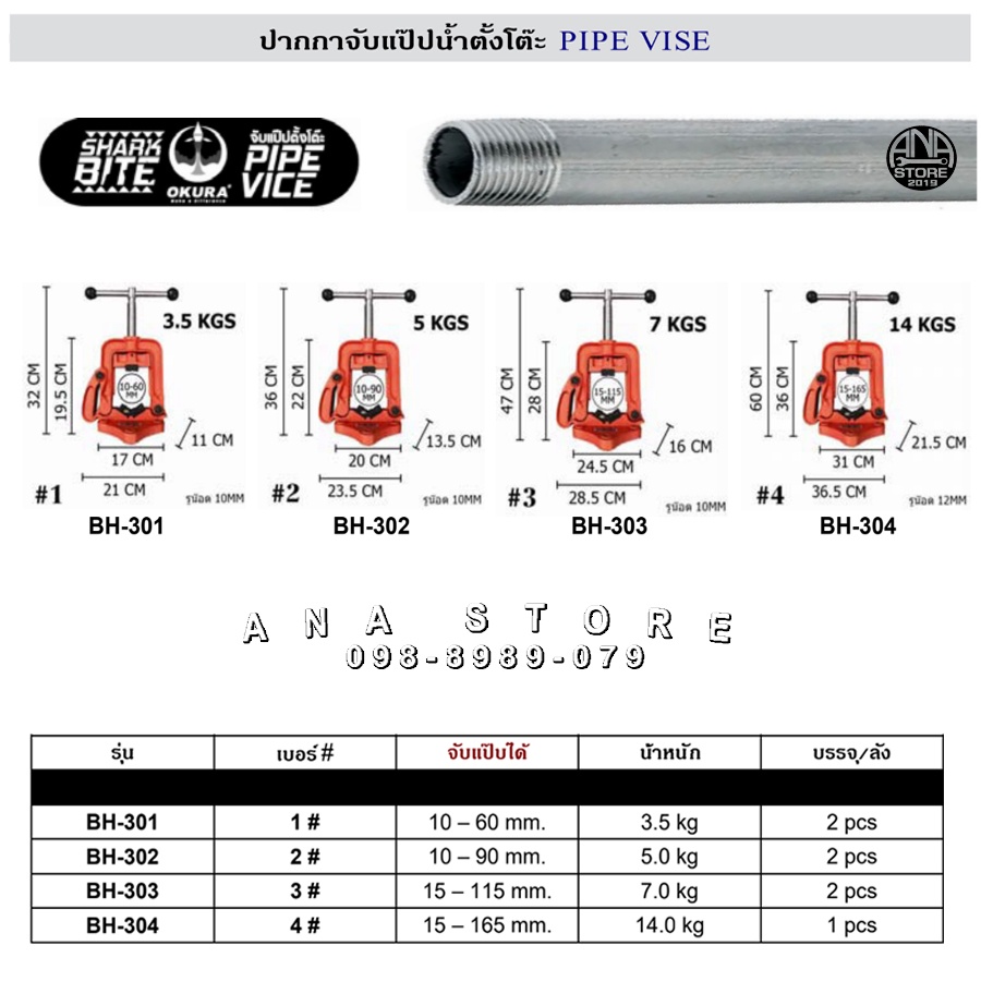 ปากกาจับแป๊บ OKURA แบบตั้งโต๊ะ ขนาด 10-165มม เบอร์ 1,2,3,4