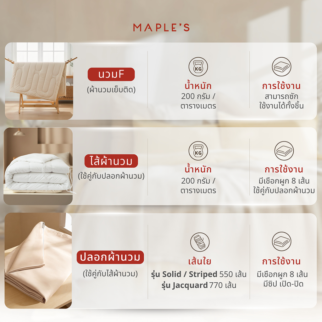 MAPLE'S ผ้านวม ปลอกนวมรุ่นกันน้ำ 550-770เส้น ลดสิว เอนก ผ้าห่ม Blanket waterproof comforter duvet