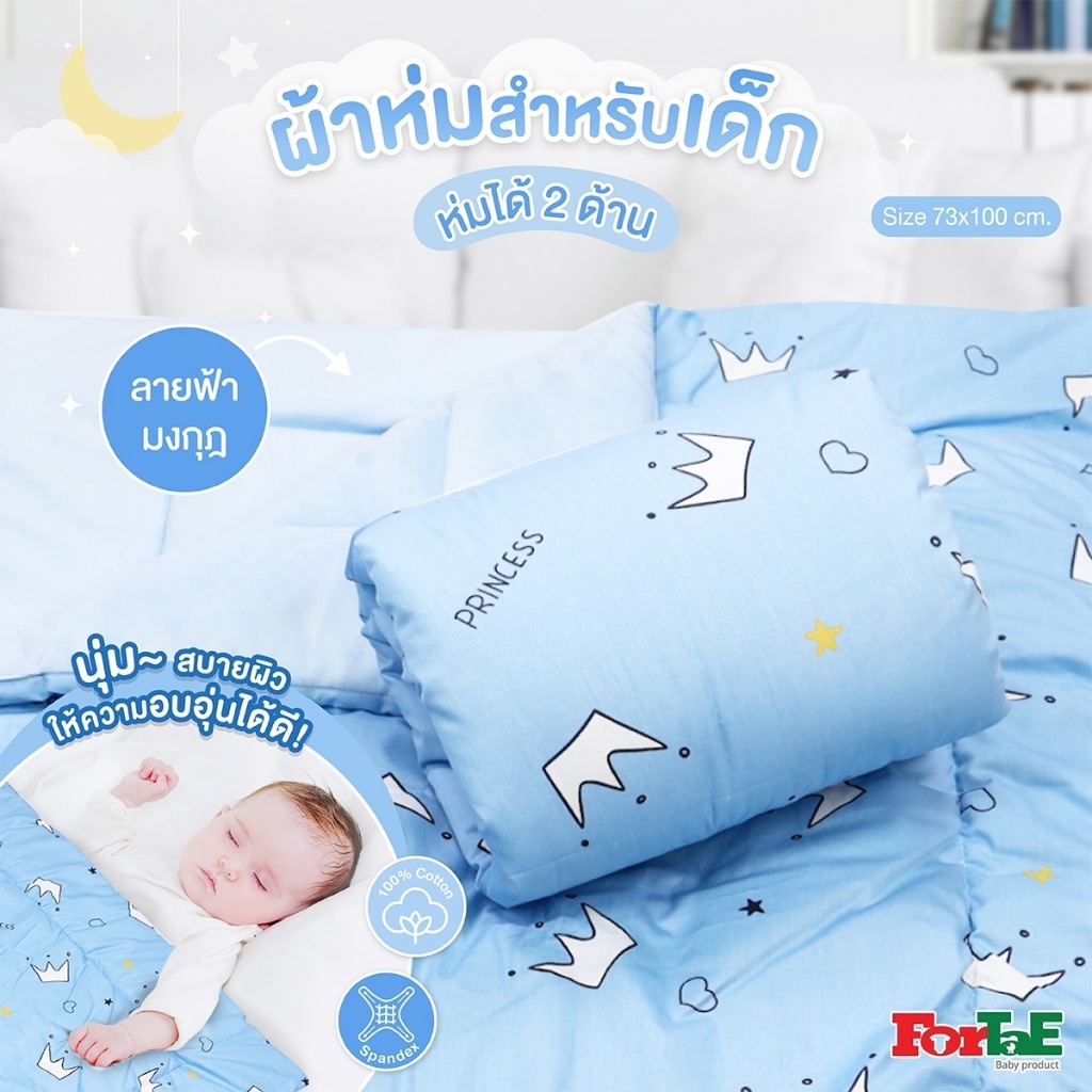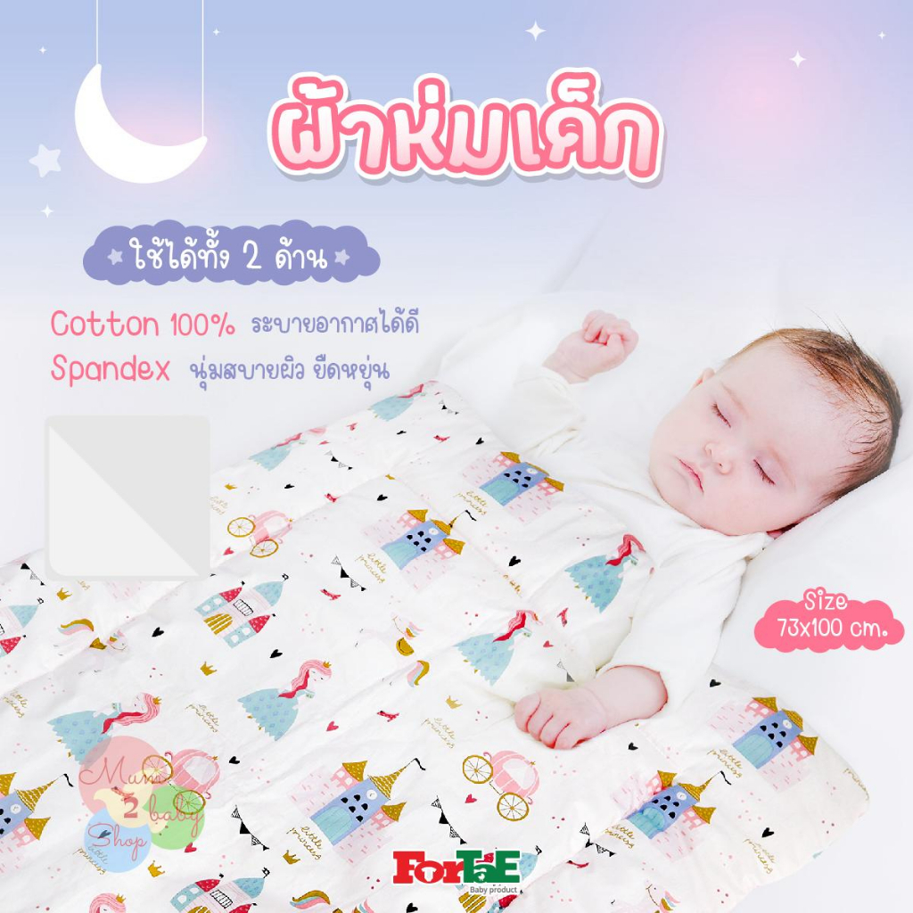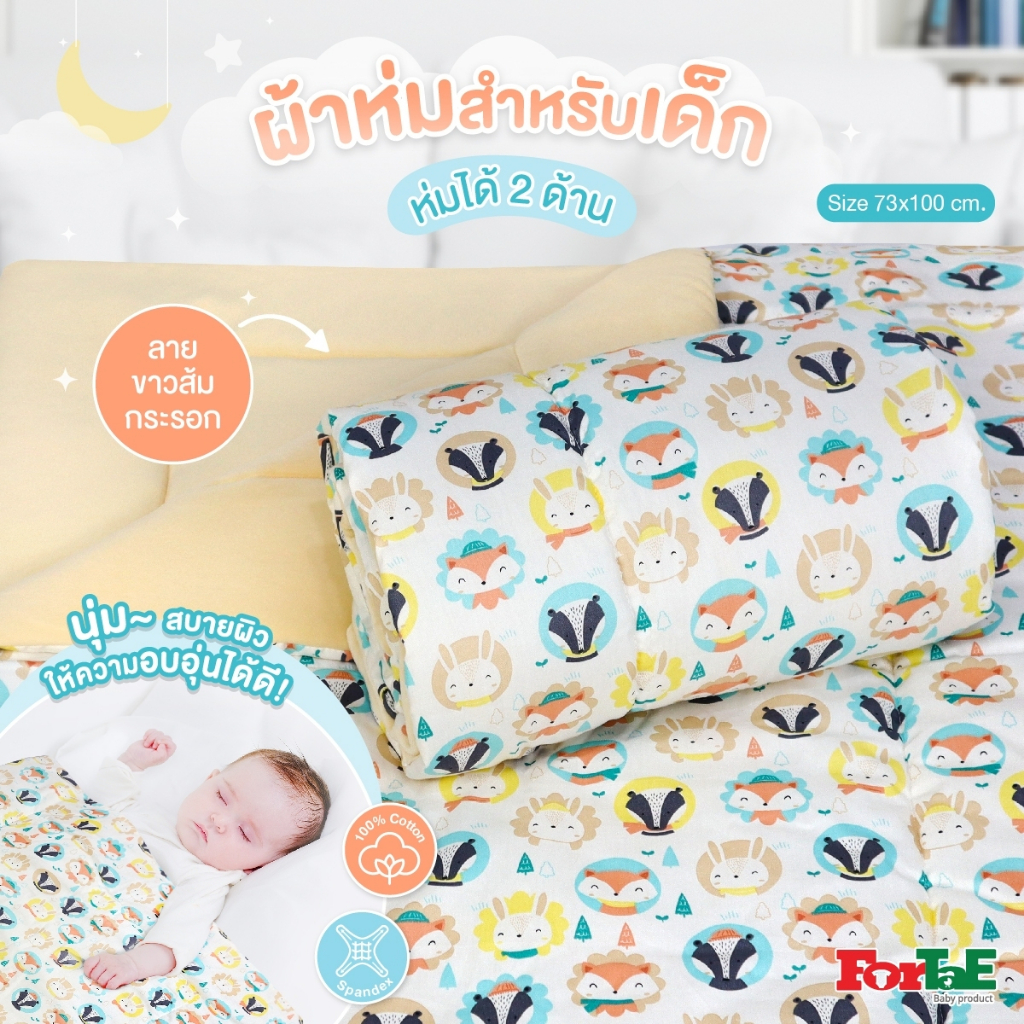 Fortae Baby ผ้าห่มเด็ก Premium Blanket cotton100%+Spandex ห่มได้2ด้าน 73x100CM. แรกเกิด ถึง2ขวบ