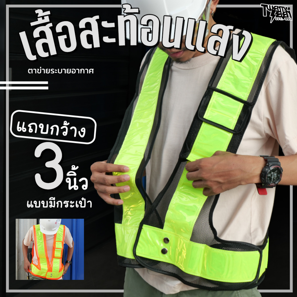 เสื้อกั๊กสะท้อนแสง เสื้อจราจร แถบ 3 นิ้ว(ใหญ่พิเศษ) มีกระเป๋าหน้า ผ้าตาข่ายไม่ร้อน รับสกรีนไม่มีขั้นต่ำ (รุ่น R3-VP)